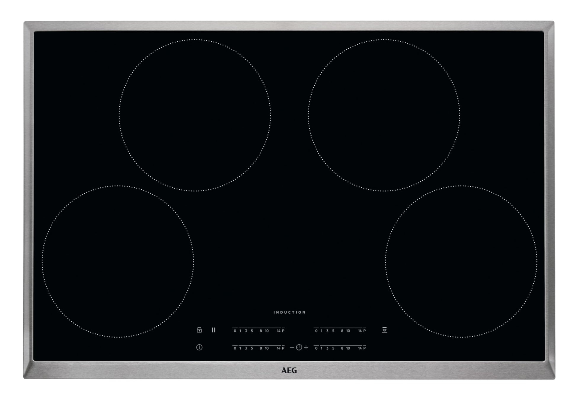 AEG IKB8443AXB Induction Hob with Hob²Hood, Slider Control, 80 cm, Stainless Steel Frame, 4 Cooking Zones, Power Function, Child Lock