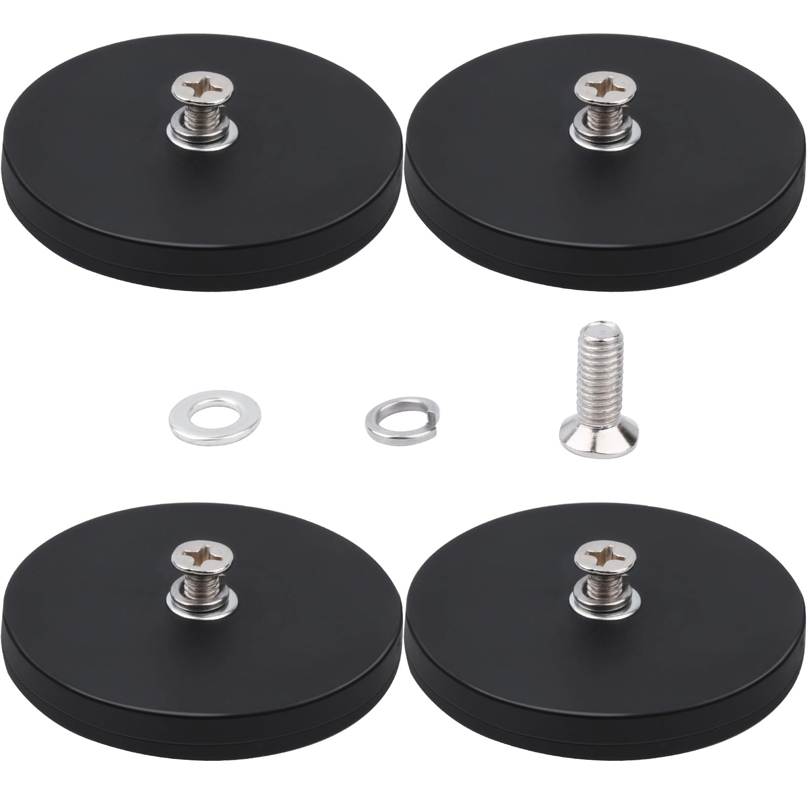 ["Neodymium magnet with thread】The rubber base of the magnet hook consists of 6 pieces of NdFeB magnets, the sturdy magnetic hook can hold a maximum weight of 30 kg and has an extremely strong magnetic force. 66mm diameter, 4-pack.","【Strong magnets】The magnetic force of our strong large magnetic hook product is three times higher than other cheap products of the same size. The base of the magnet hook is made of rubber coating, soft material, strong friction, very durable and not easy to fall off. magnet rubberized.","【Easy to install】With the rubber-coated magnets, you can attach desired objects to various metal surfaces, and each rubber-coated magnet comes with a spring disc, a washer, and nut accessories. Attach the magnet with a nut to the hardware and magnetically attach it to your car or studio. Perfect for outdoor camera mounts, light mounts, and car license plate holders, etc.","【Multipurpose】The rubber-coated magnets are coated with waterproof and non-slip rubber. Strong magnets use scenes with a maximum temperature of up to 176 °F and are more durable than other neodymium magnets. The magnetic holder is ideal for outdoor off-road vehicles to mount light bars, reflectors, and other accessories, mounting camera mounts, camera mounts, display boards, temporary light signal lights, license plate magnets, and other tools.","【Professional brand】Aenienoe is a manufacturer of neodymium magnets, we specialize in high-quality magnets. Welcome to the shop to discover more magnet styles. If you have any questions, please contact us, your satisfaction is our greatest goal!"]