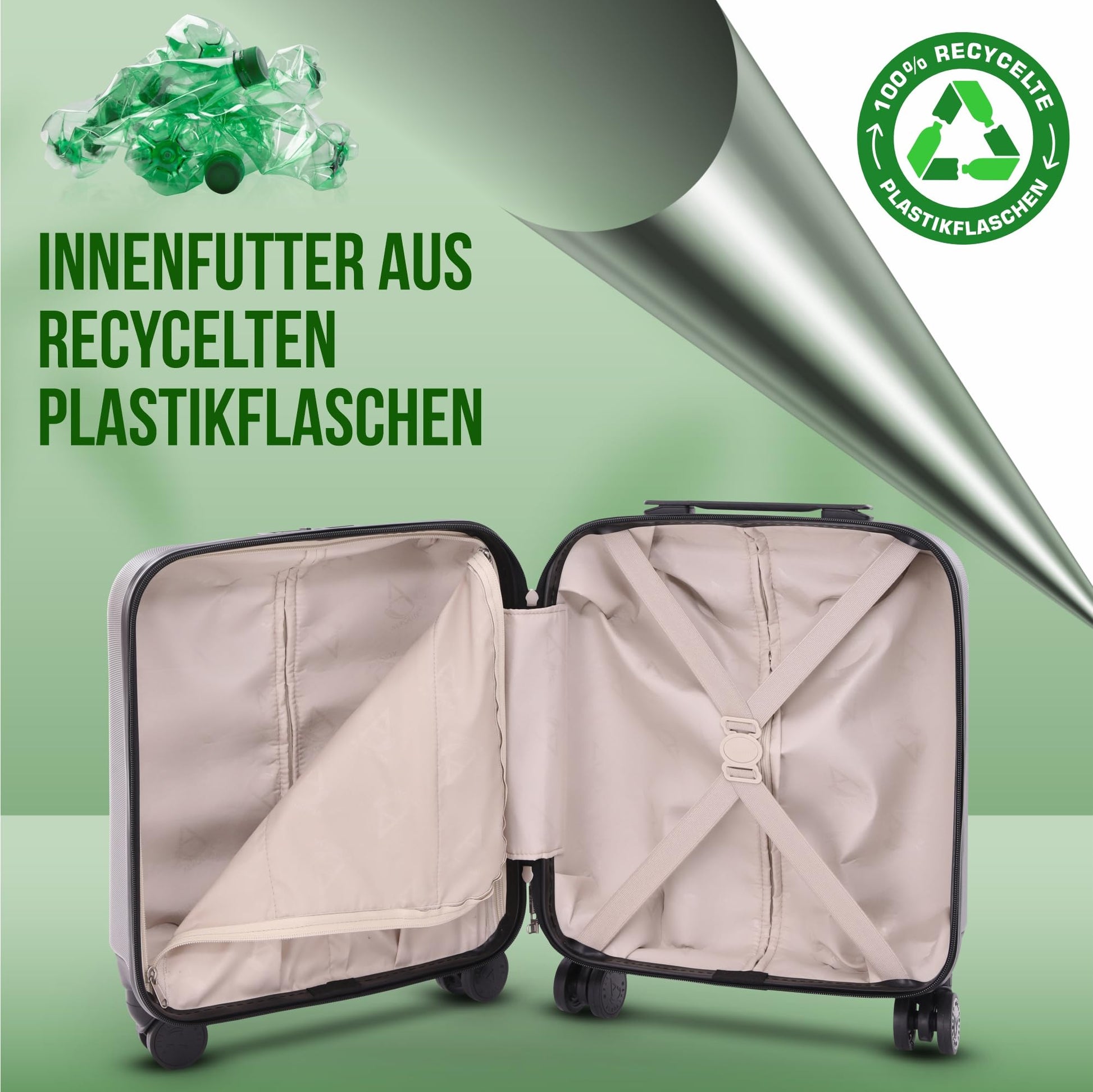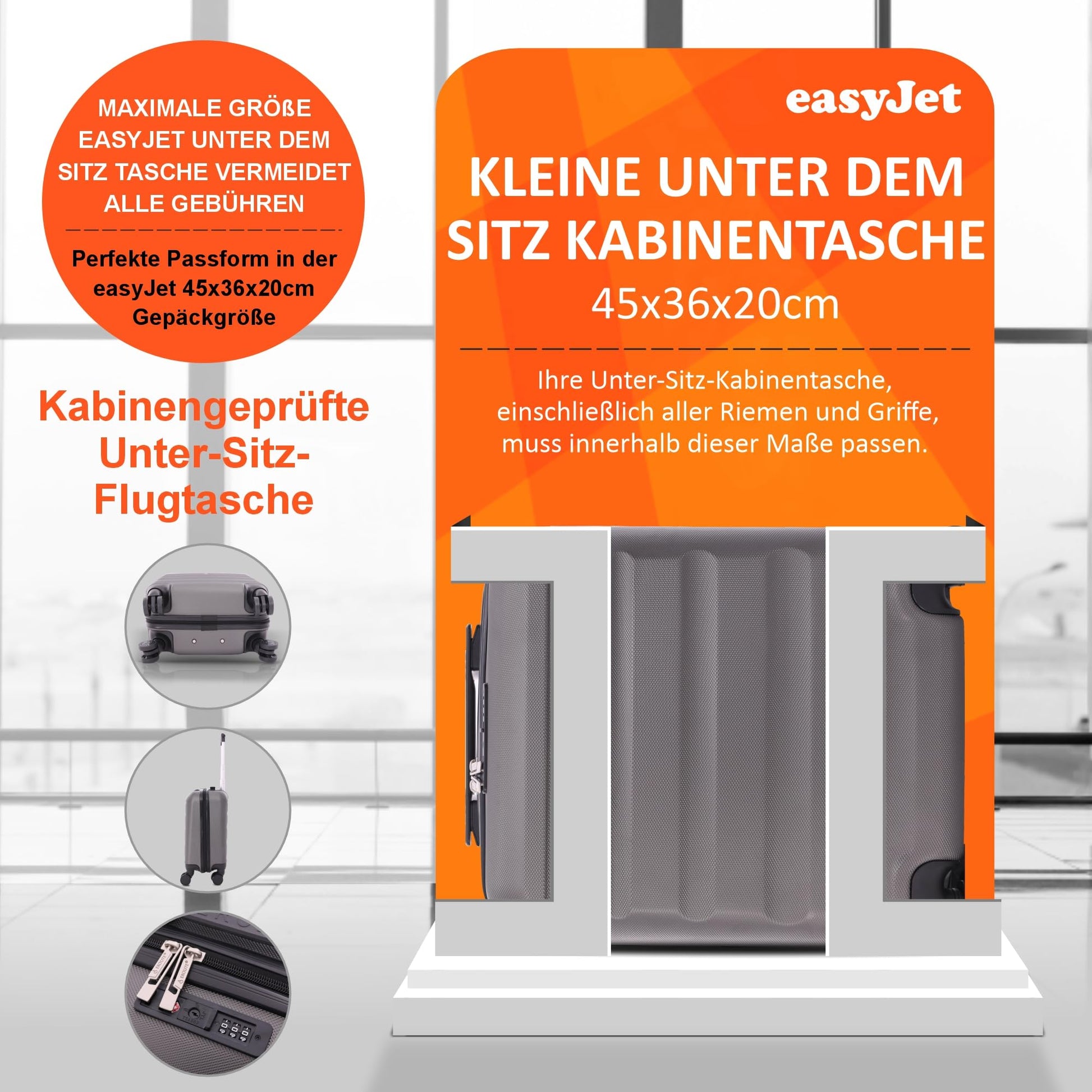 ["MAXIMUM EASYJET CABIN LUGGAGE SIZE - We have designed our stylish hard shell cabin luggage specifically to measure exactly 45x36x20cm; the MAXIMUM permitted size you can take free of charge in the cabin when flying with easyJet. It is also accepted by several other major airlines worldwide. Dimensions: 45x36x20cm (handle retracted, including wheels), height (handle extended): 1m. Weight: 2.4kg. Capacity: 28L.","DURABLE OUTER SHELL & EXTENDABLE HANDLE WITH PUSH BUTTON - The suitcase is made of durable, scratch-resistant ABS plastic to provide high protection for your belongings. It also features a double aluminum telescopic handle that extends to a total height of 1 meter. The handle is extended using a convenient push-button mechanism and can be easily retracted into the suitcase when not in use.","ECO-FRIENDLY INTERIOR & HIGH-QUALITY INTERNAL ZIPPERS - Inside the suitcase, you will find a fully lined interior made of eco-friendly material (from recycled plastic bottles). You will also find an internal zipper to separate your belongings, equipped with high-quality SBS zippers, and a mesh pocket for important documents. The packing straps on the opposite side keep your clothes in place during travel.","STURDY EXTERIOR ZIPPERS & INTEGRATED TSA LOCK - The suitcase features a double zipper system with high-quality sturdy SBS zippers for easy and reliable closure. The suitcase has an integrated TSA-approved combination lock for additional security of your belongings.","DOUBLE WHEELS FOR ULTRA-SMOOTH ROLLING - The suitcase features double spinner wheels for extra smooth rolling. The wheels are multidirectional, providing a full 360-degree movement for stress-free travel."]