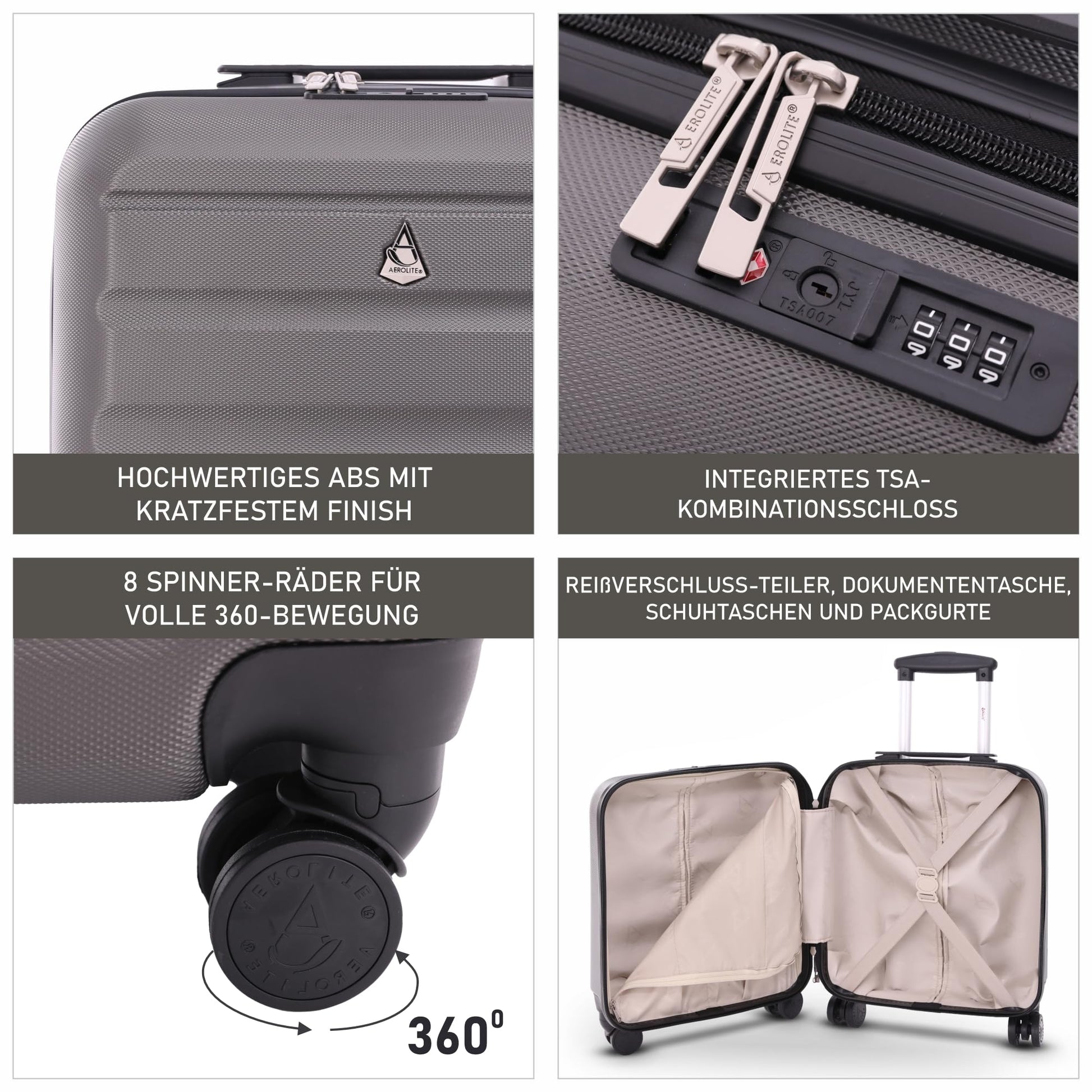 Aerolite 45x36x20cm easyJet Maximum Carry On ABS Lightweight Hard Shell Cabin Trolley Underseat Trolley Boarding Luggage 45x36x20 with 4 Wheels and TSA-Approved Lock (Charcoal Grey)