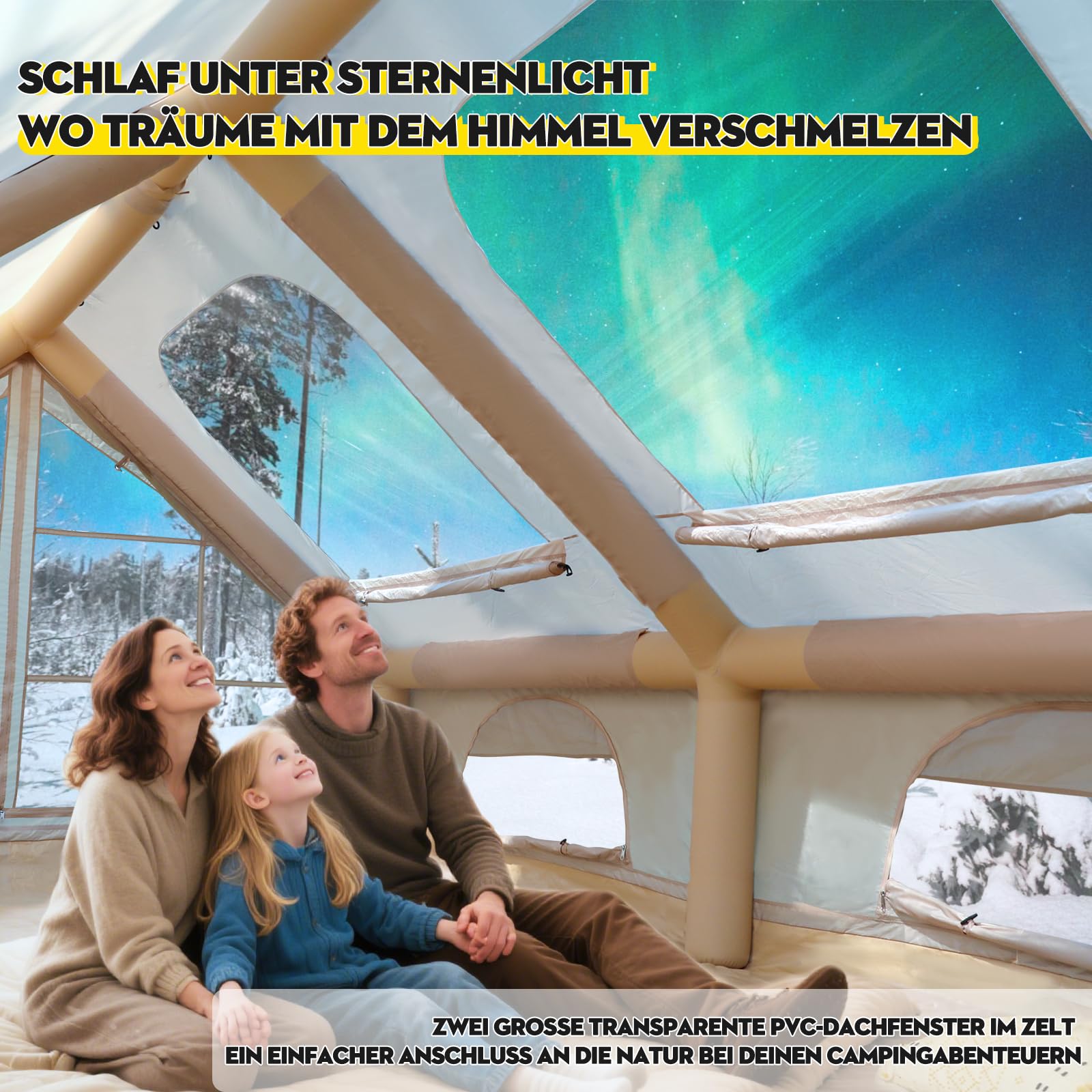 Afitdon Inflatable Camping Tent with Stove Jack & Roof Window, Inflatable Tent for 2-10 people with Air Pump, Inflatable Tent made of Waterproof Oxford Fabric for all seasons, Fast Setup Air Tents.