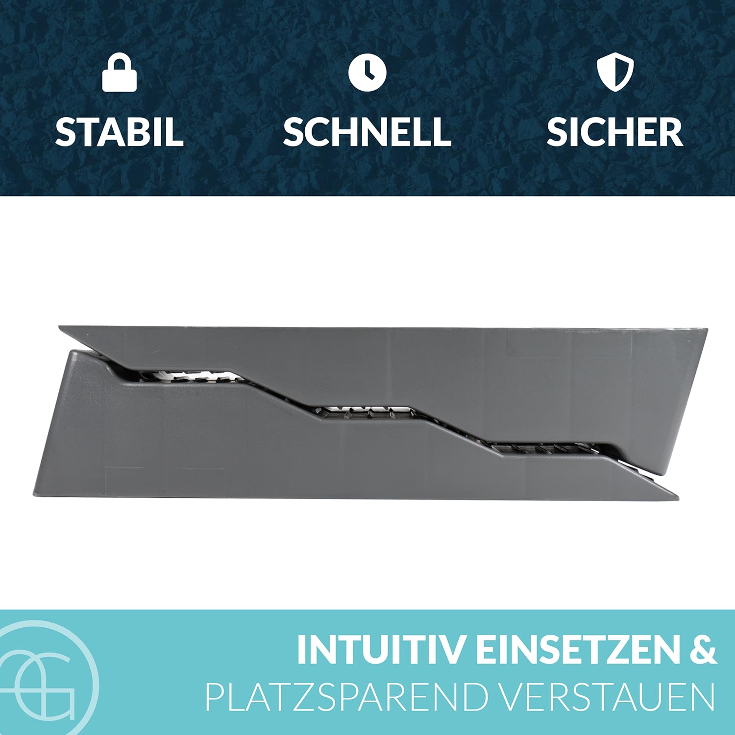 AG Automotive leveling ramps, leveling blocks for motorhomes, campers, and caravans. Womo Level Up ramp in gray for leveling on uneven surfaces while camping.