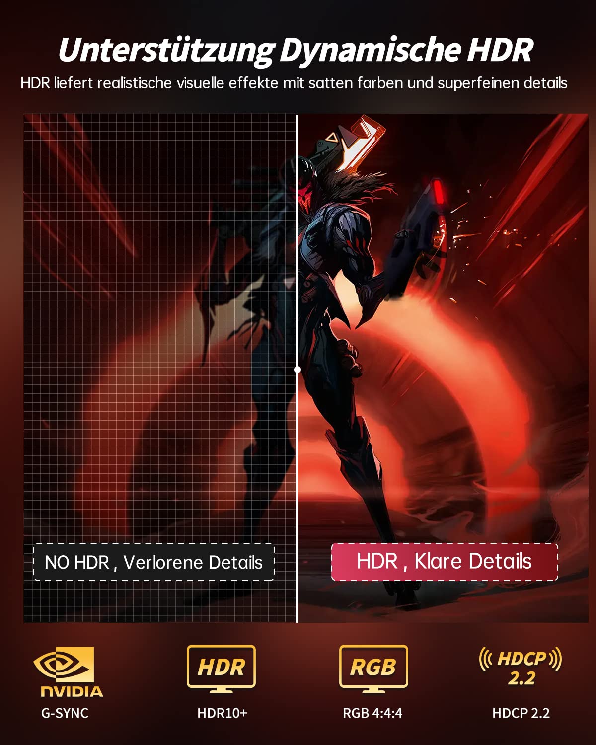 "【HIGH PERFORMANCE FOR GAMERS】Smooth gameplay without tearing at 4K UHD up to 120/144/165Hz, 2K QHD up to 240Hz, and 1080p FHD up to 240Hz. Plug & play for easy use and smooth playback without frame drops",