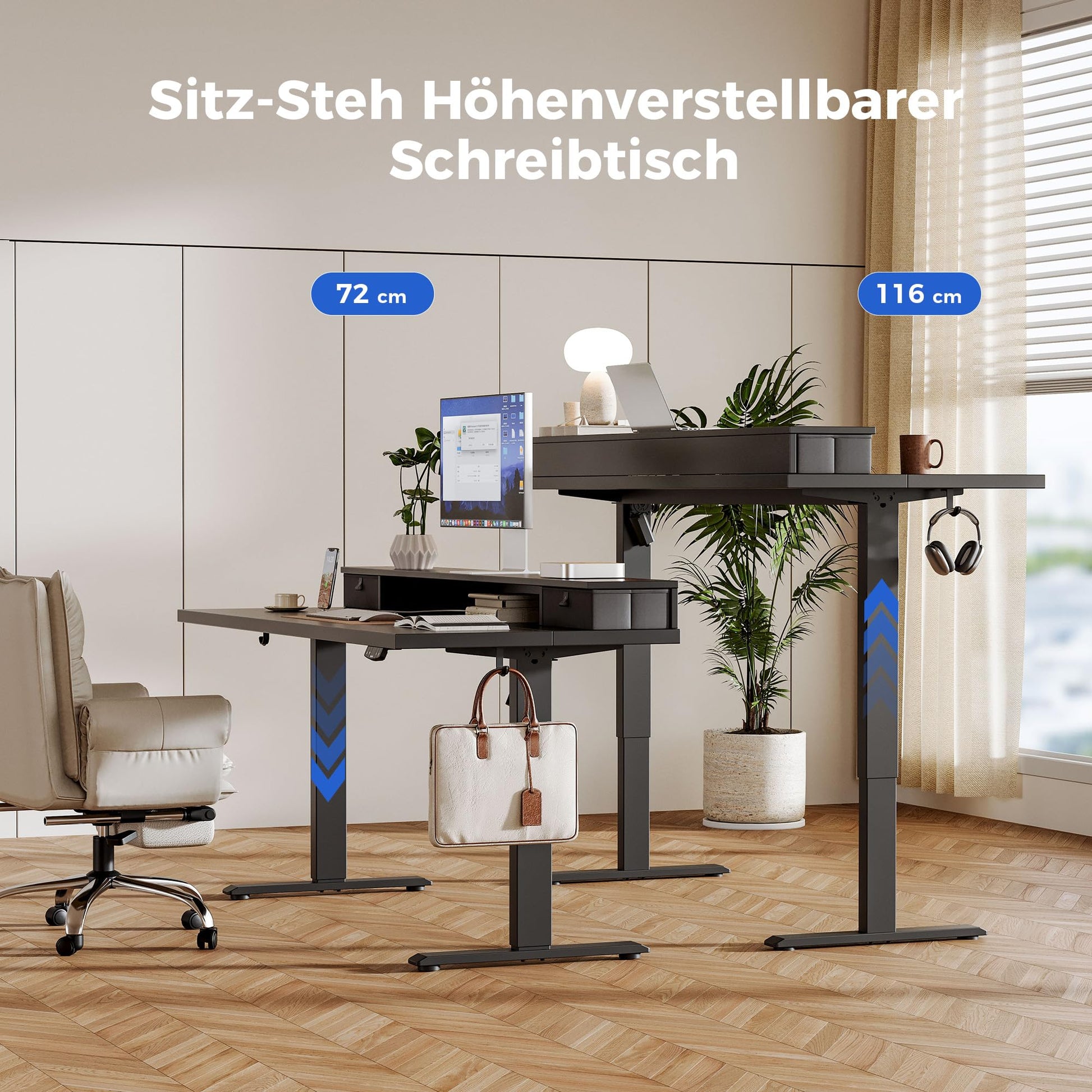 ["【Electric Standing Desk】 The Agilestic standing desk features an advanced motor that supports height adjustment between 28 inches and 46 inches quietly (under 55 dB) while running. You can adjust the desired height individually and save it with 2 memory buttons.","【2 Drawers】 The 2 fabric drawers above the desk can organize your clutter and keep the desk clean and tidy at all times. The desktop is made of low VOC materials and meets national standards for safe air.","【Sturdy Frame and Durable Motor】 Our industrial-grade steel frame and T-shaped frame design ensure that this sit-stand desk can support a maximum weight of 154 lbs. Paired with a motor that has passed 50,000 international lift tests, it is ensured that the desk will function reliably over a long period of time.","【Anti-Collision Technology】 When the lifting table encounters an obstacle during lifting, it moves 2 cm in the opposite direction to avoid potential damage or injuries. The tabletop wood is FSC certified.","【Easy to Assemble】 The installation process of our electric standing desk is very easy with a few steps, the package includes installation instructions and assembly tools, and we also have an installation video as a reference. Please feel free to contact us with any questions or warranty concerns during assembly and use."]
