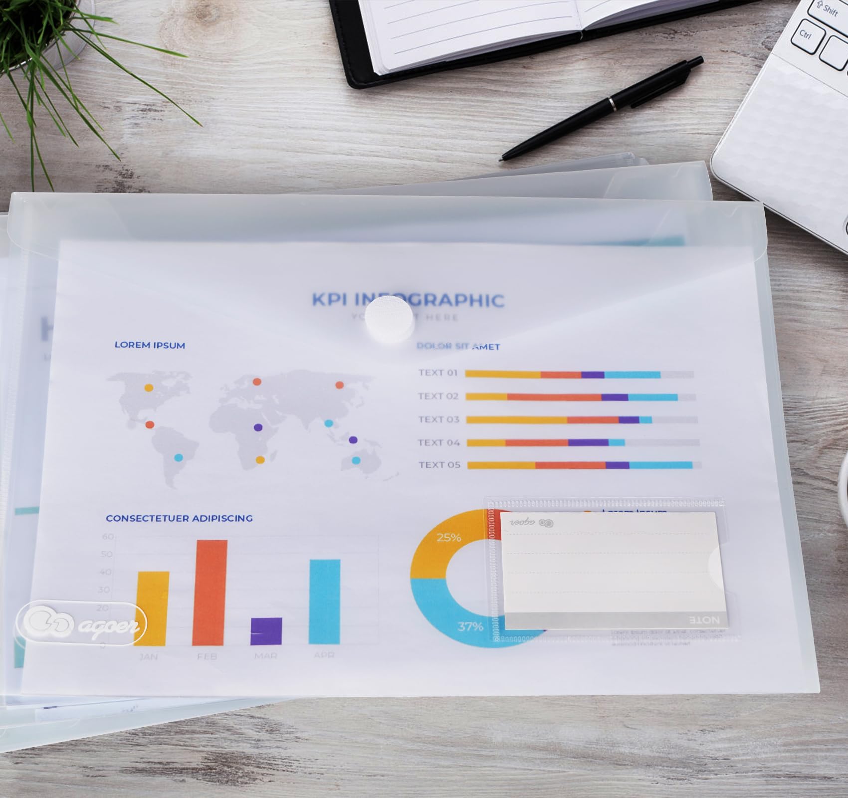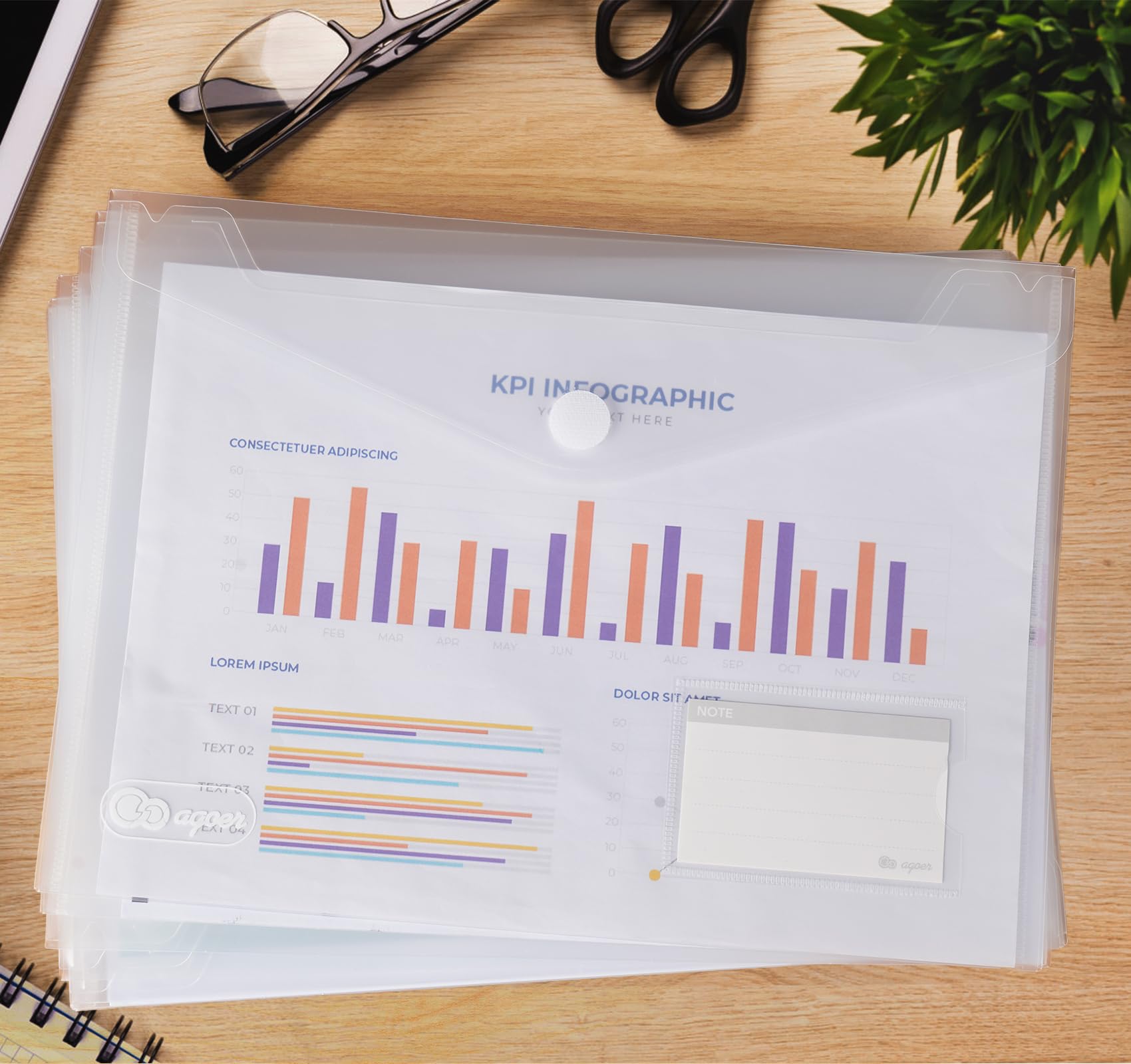 Agoer Velcro Closure Document Bag A4, 40 Pieces Transparent A4 Document Folder With Label Paper for Organizing Documents, A4 Document Bag for School, Home, Office