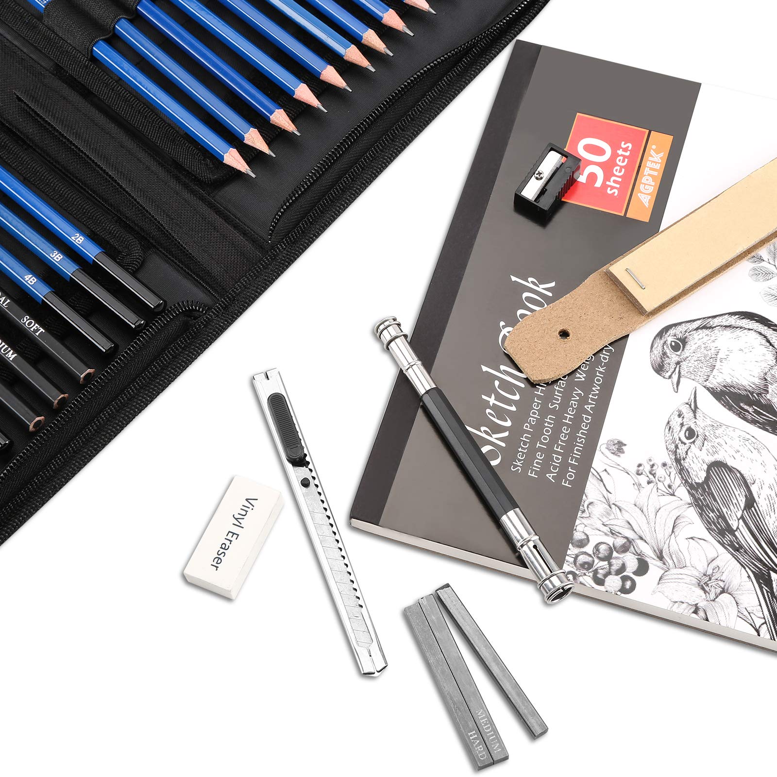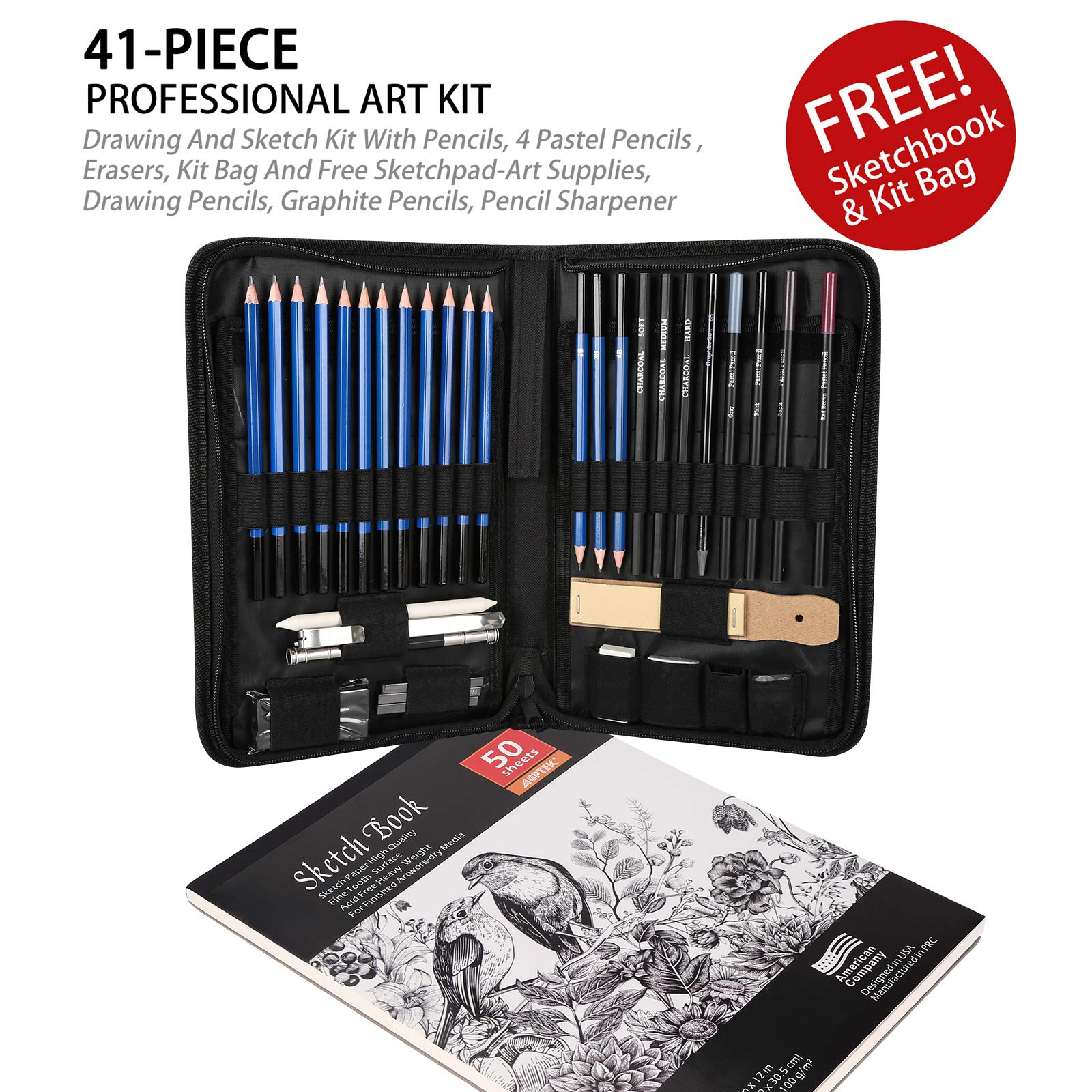 AGPTEK 41pcs Drawing Set - Pencils Sketching Set with 50 sheets Drawing Pad, 5H-8B artist set in Zipper Case, Drawing Accessories Set for Artists, Beginners, Students