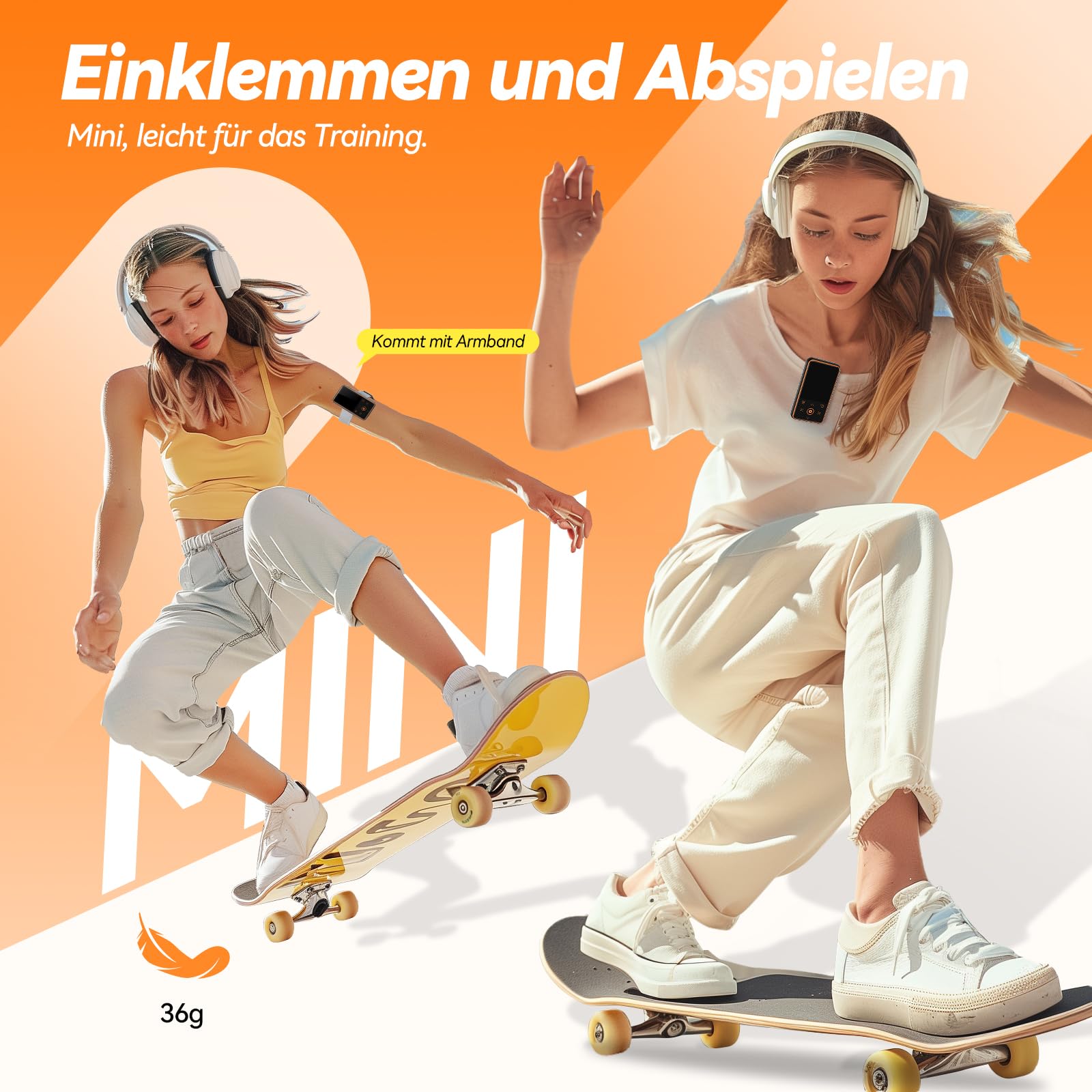 đăClip Design & Lightweightă The serrated clip design securely attaches to any clothing. Weighing only 36g, it's so light that you hardly notice it during workouts. Equipped with an arm strap to keep your hands free during exercise. Ideal for running, fitness, tennis, skateboarding, and other sports. Also an essential music player for travel and commuting.