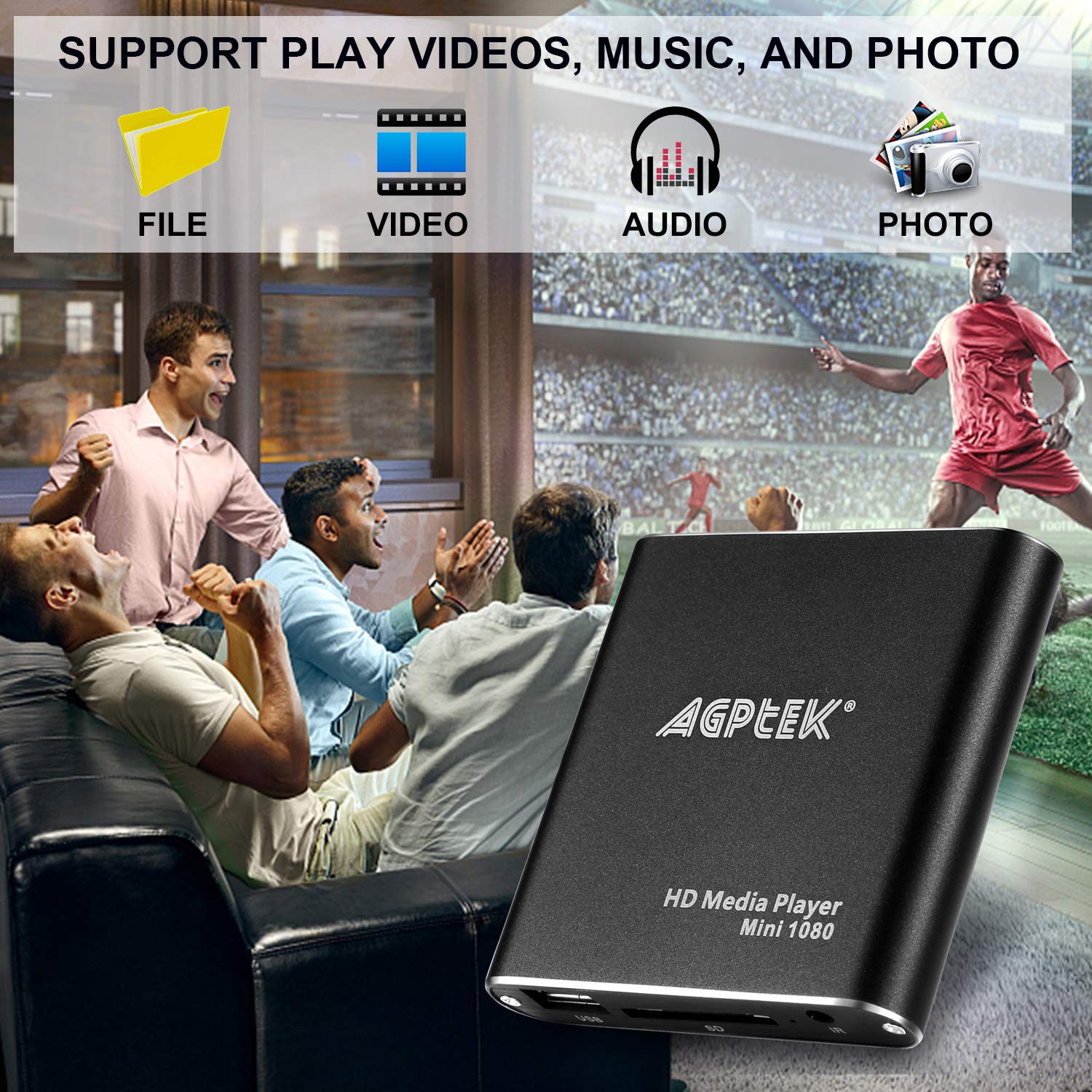 AGPTEK Mini 1080P Full HD Digital Media Player with remote control for MP3, WMA, OGG, AAC, FLAC, APE, AC3, DTS, ATRA - Supports HDMI CVBS & YPbPr video output (Black).