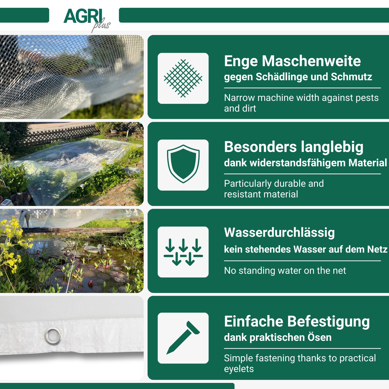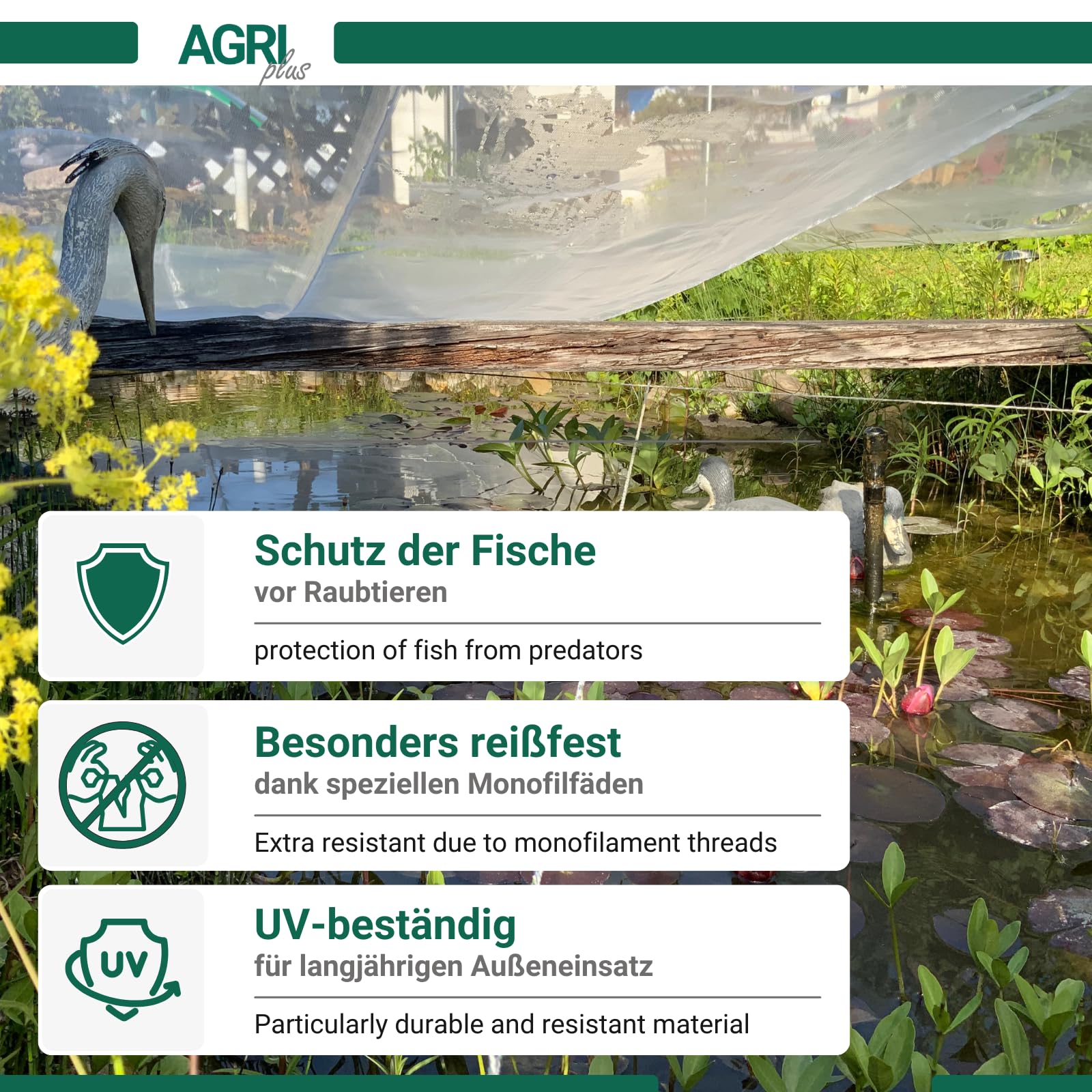 AGRI plus Pond Net with Eyelets I 3 x 5 m I Various sizes I Fine mesh 0.8 x 0.8 mm I Pond protection against herons I Protective net with reinforced edge I Cover net UV-stable & water-permeable