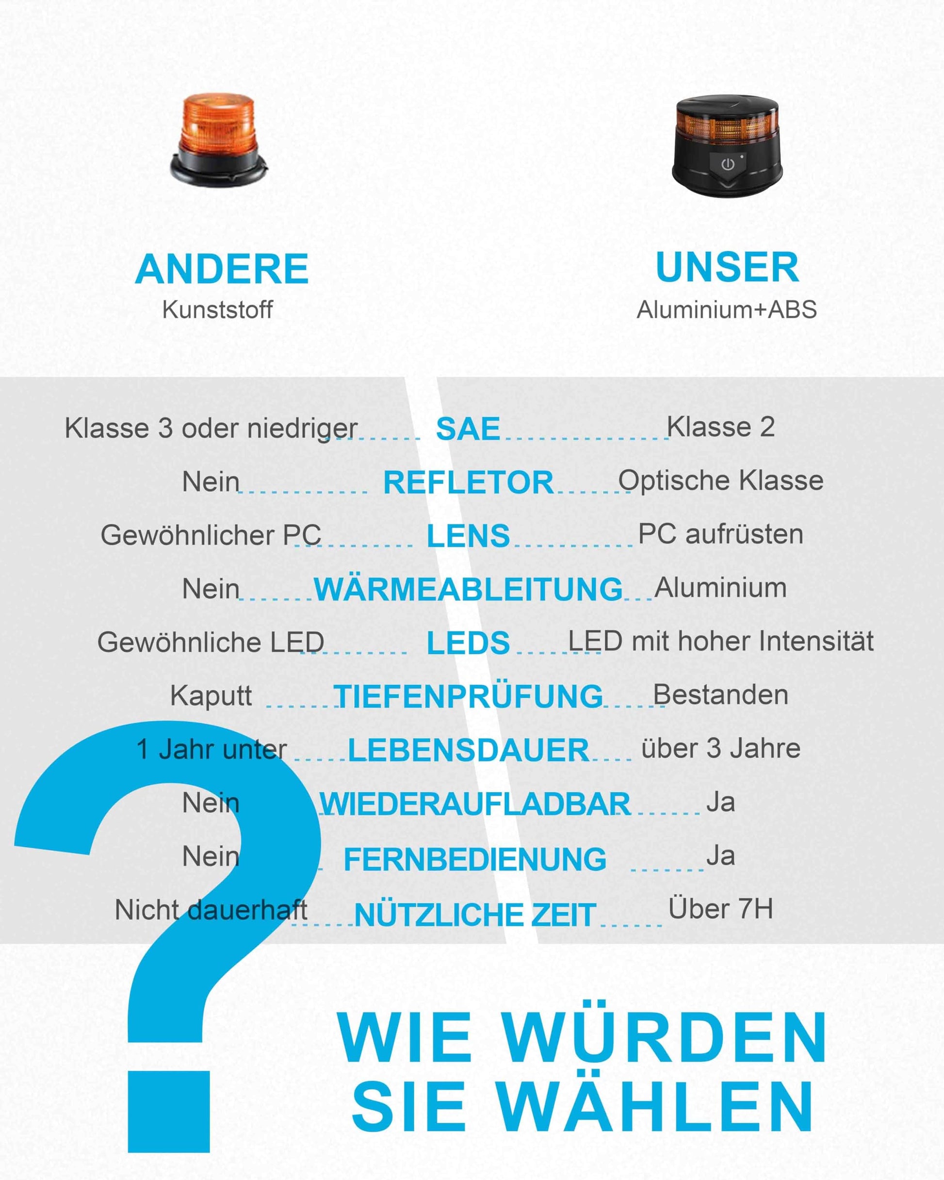 "【BATTERY-POWERED MAGNETIC BASE】This Battery LED Warning light is suitable for all vehicles and comes with a strong magnetic base and 6 magnetic caps with protective rubber feet for easy mounting on any external metal; note that it is suitable for emergency use only when using batteries",