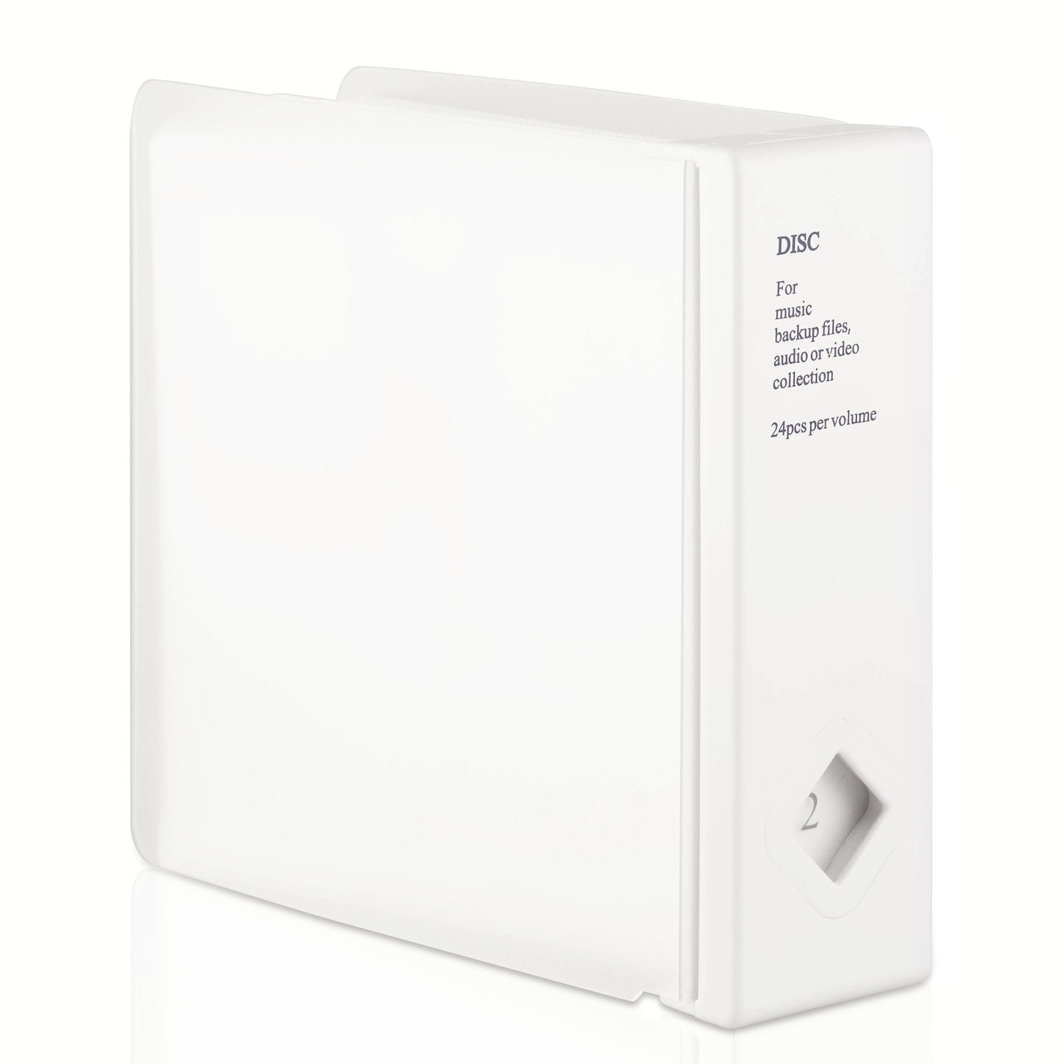 AhfuLife CD/DVD/Blu-ray Storage Boxes Colorful, DVD Box Space-Saving Carrying Cases, CD Wallets for Car and Home up to 120 Discs Great for Gifts (White)
