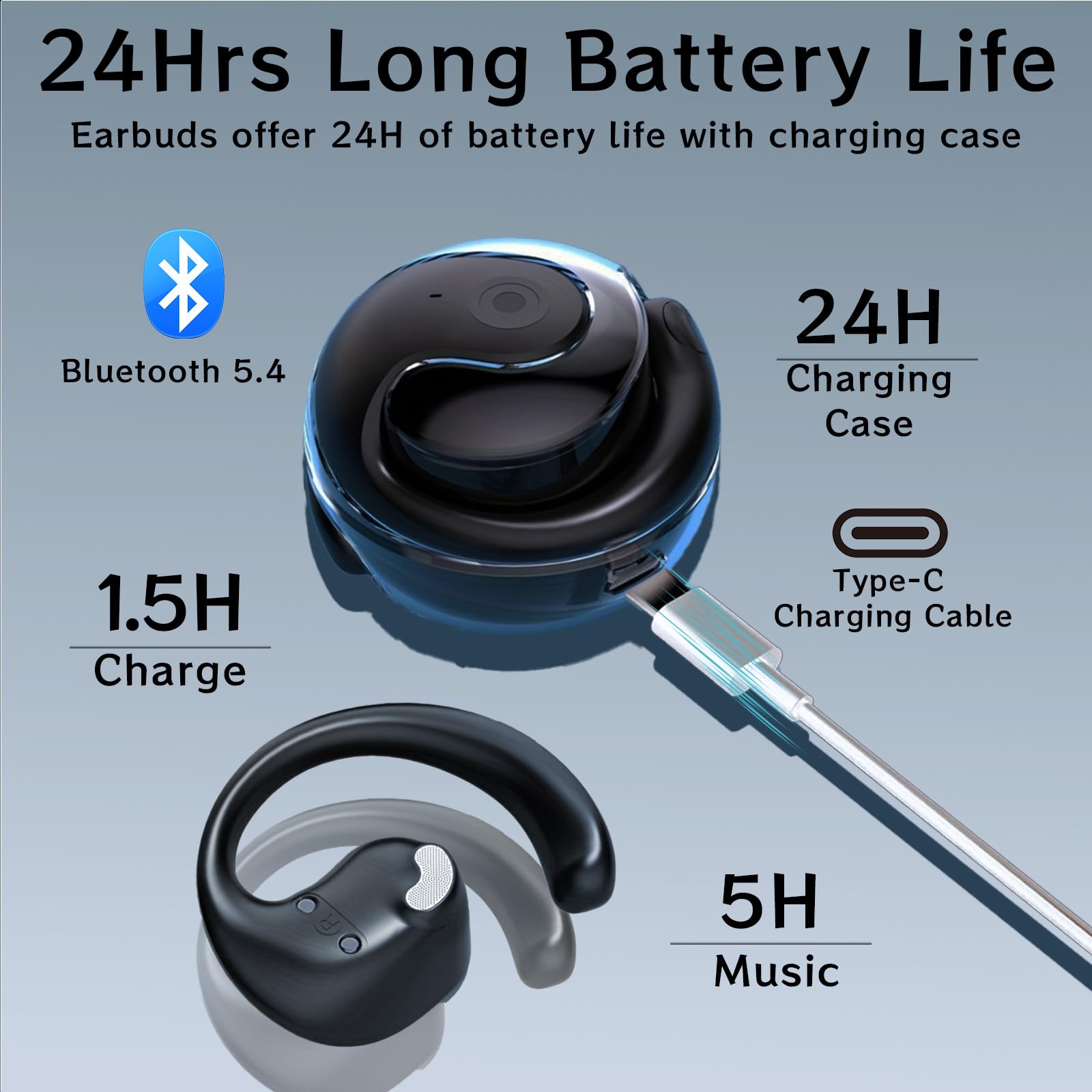 "Extended playtime and superior connectivity: With a standby time of up to 24 hours and a playback time of 8 hours per charge, our earbuds are designed for long-lasting use. These wireless Bluetooth headphones are equipped with Bluetooth 5.4 technology, providing no latency, improved processing performance, and efficient energy consumption so you can stay connected longer."