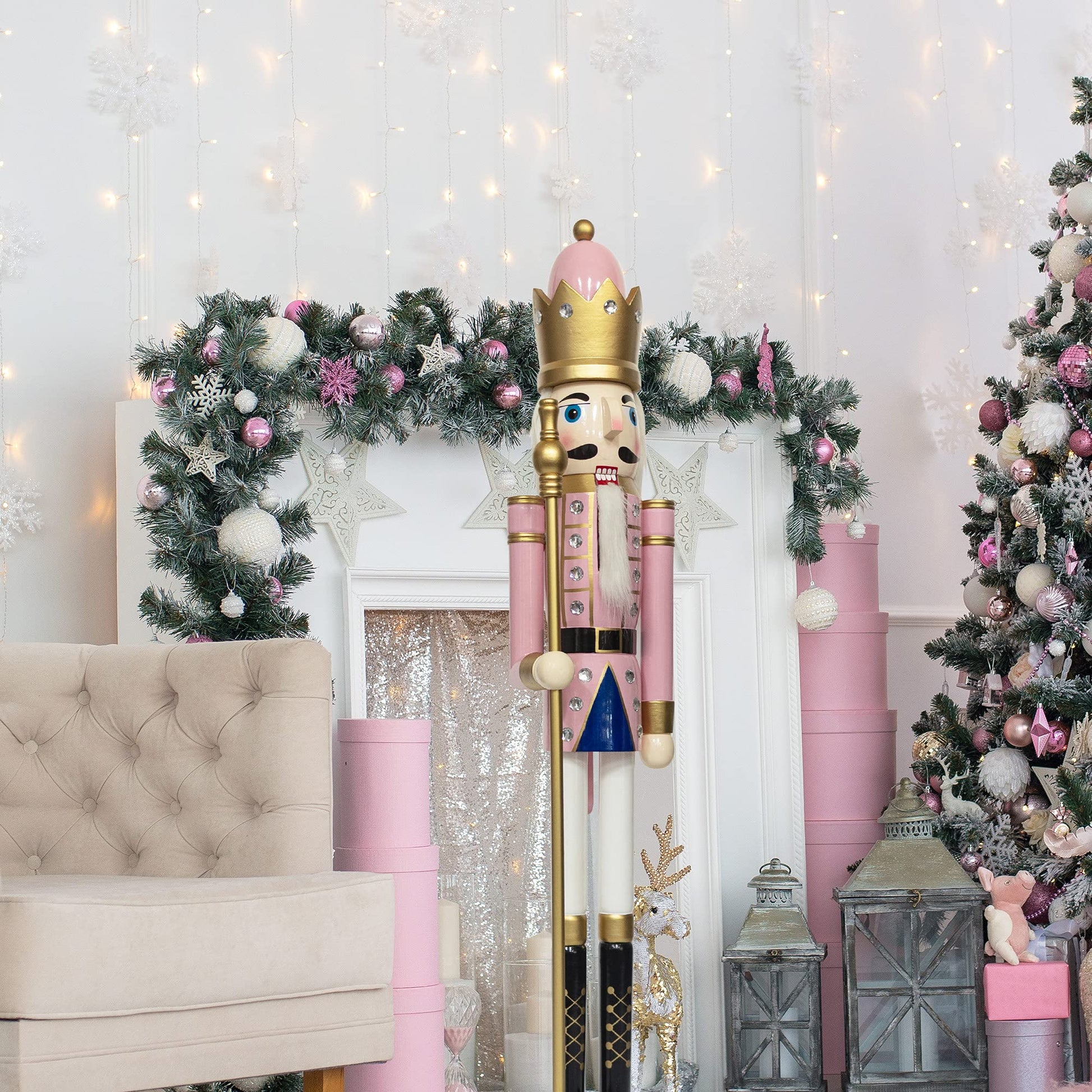 AI Store 120 cm Christmas Nutcracker Life-size Large XXL Wooden Nutcracker Figure Christmas Decoration (Pink King)