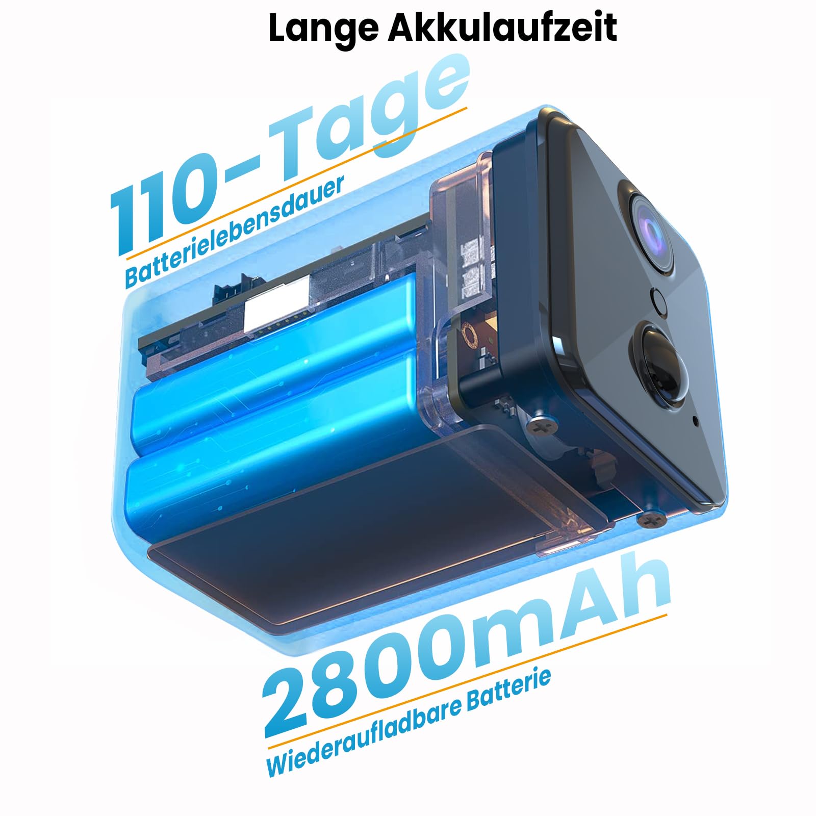 【Built-in & Long Standby Battery】2800mAh wifi surveillance camera, Technical design with low power consumption, which can continuously record for 10 hours after charging. The camera can record for over 60 days at low sensitivity settings. It saves power by recording when someone comes and standby when no one comes.