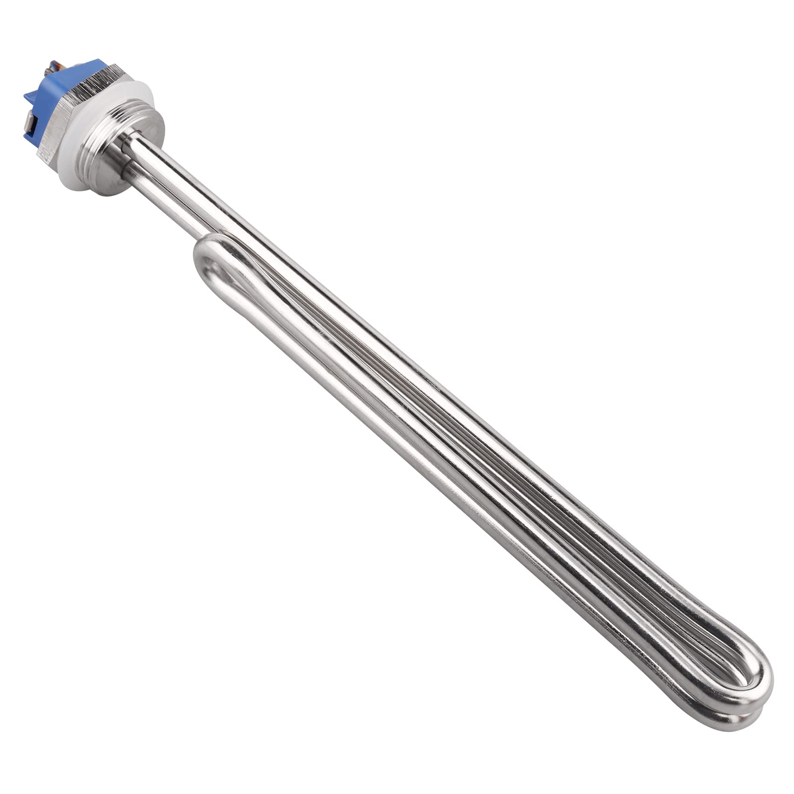 ["Thread diameter: 1 inch (DN25 33.249mm)", "Power: 240V 300W", "Tube Material: Stainless steel, with waterproof silicone ring for a good seal", "Resists dry firing, scale deposits, and sand that would burn out conventional elements", "Simple design to provide uniform heat and improve heating efficiency."]