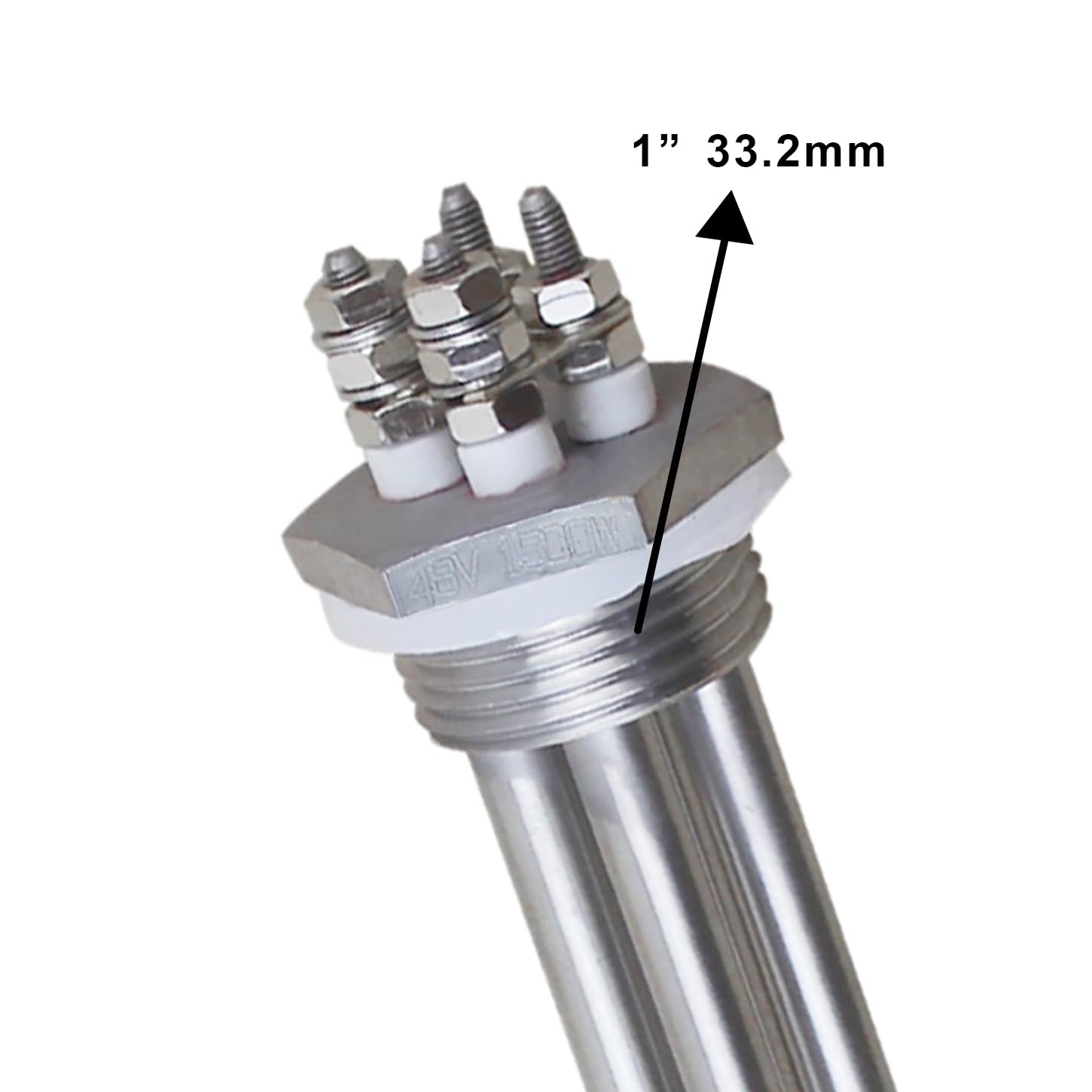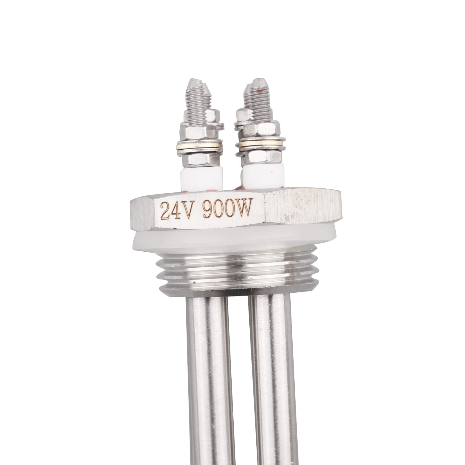 ["Thread diameter: 1 inch (33.249mm)","Power: 24V 900W","Pipe material: Stainless steel, with silicone waterproof ring for good sealing, 2U","Resists dry firing, lime scale, and sand that would burn out conventional elements","Simple design to provide even heat and improve heating efficiency."]
