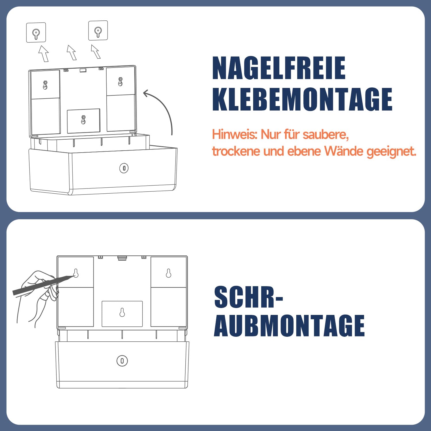 "Two Mounting Methods: Includes screws and nail-free adhesive pads for flexible installation (adhesive pads only on smooth, clean, dry walls; use screws on uneven surfaces)",