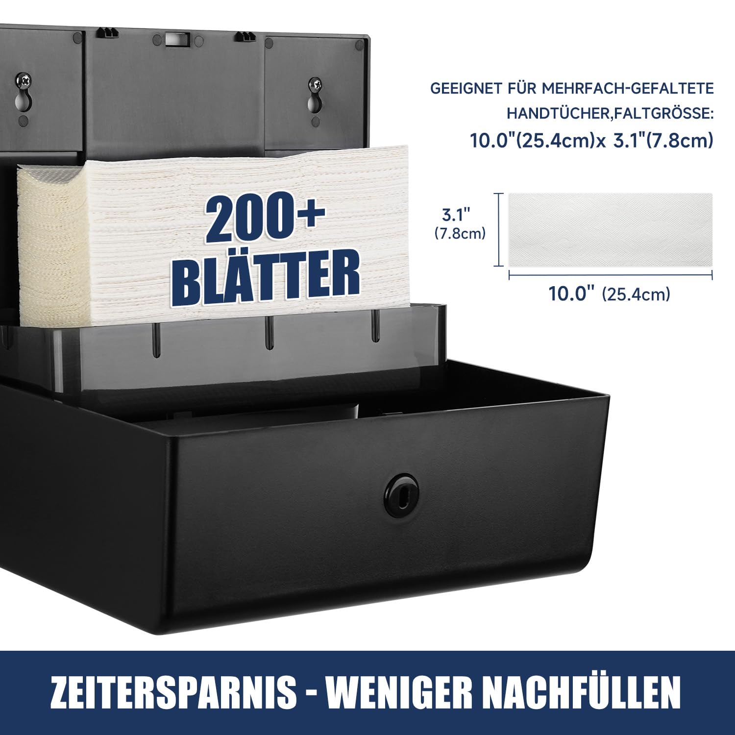 AIKE Paper Towel Dispenser Wall Mount Commercial, holds 200+ sheets for Z-fold & 25.4x7.8 cm multi-fold towels, Towel Dispenser AK5102, Black.