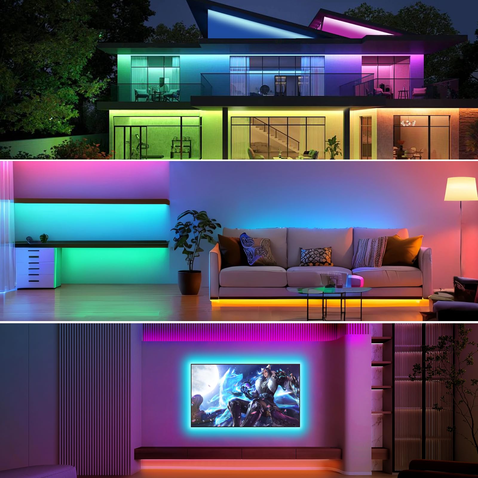 ["Super bright and high color rendering】LED strip has a higher CRI standard, high energy efficiency, and environmental protection. It can not only meet your requirements for bright light, but also save your maintenance and energy costs. The silicone material is waterproof, LED strips do not yellow or age under strong sunlight, and the high color rendering index (CRI>90) is ideal for reducing eye fatigue","【Control Lighting Three Modes】Neon LED Strip You can change the color, brightness, mode, and music mode through the remote control or the TUYA app or voice control to make your life more convenient (Note: only supports 2.4GHz)","【Music Mode and Timer Function】Neon LED Built-in microphone with adjustable sensitivity, the light changes with the rhythm of the music or microphone, bringing a romantic and fun atmosphere to your party and life. You can set countdown and timer preset time to automatically turn on and off","【CUTTABLE & WATERPROOF】LED Strip Outdoor 180° folding is not easy to break, you can cut it into DIY special home decoration or unique business logo. IP65 WATERPROOF is sealed, whether it is installed indoors or outdoors, to provide you with long-lasting light effect. Note: The base is not waterproof","【Widely Used】LED Strip Outdoor It can be a better decorative light for patio, homes, caravans, kitchens, bedrooms, bars, office buildings, parties, computer games, outdoor and other places"]