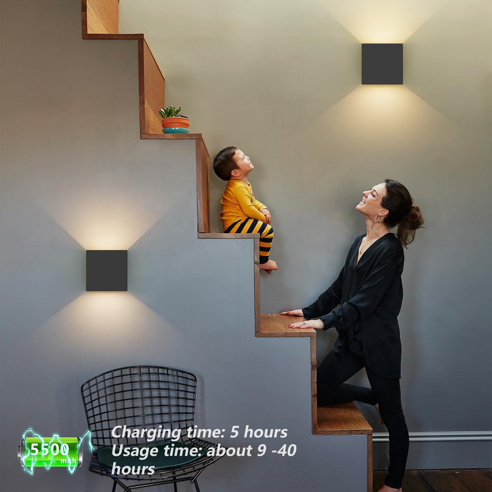 ["🔹Up and down illuminated magnetic battery wall light - LED battery wall light has a strong magnet on the bottom, allowing it to securely attach to the wall (no wiring required) and provides a soft 2700k lumen warm white light shooting up and down for eye comfort, good light, good life.","🔋Switch-controlled LED battery wall light - it comes with a switch that can be set to three modes, sensor mode, constant light mode, and off mode, making it suitable for use in bedrooms, hallways, living rooms, balconies, dining rooms, and staircases.","💡Wireless LED battery wall light with motion sensor - when installed in a dark corridor, there is no need to manually control the switch, it will automatically detect the motion of pedestrians approaching within 2m-6m and will automatically switch off if no pedestrians are detected for about half a minute, it is a little helper in saving electricity.","⚙️5w USB rechargeable battery wall light - Indoor LED wall light, the product comes with a lithium battery (5500 mAh) and a USB charging cable for charging(Please use a 5V 1A/2A adapter for charging), about 5 to 6 hours full charge, simple design, easy to use, and exceptional experience.","📩 200% customer service and gift selection - Aipsun is committed to providing services to its customers. If you have any questions after purchasing the battery wall light: Open Amazon - My Account - My Orders - Order Details - Contact Seller." Good product + 200% Aipsun service = good gift!"]