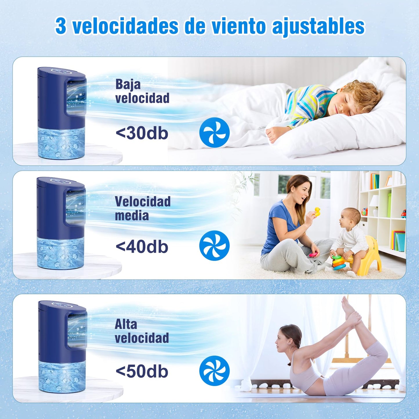 "[Upgraded Removable Water Tank] Enjoy long-lasting cooling with our upgraded 800ml water tank! Easily remove the tank for cleaning. With low noise operation (<50 dB), this air cooler is the perfect summer gift for family and friends, bringing comfort and coolness."