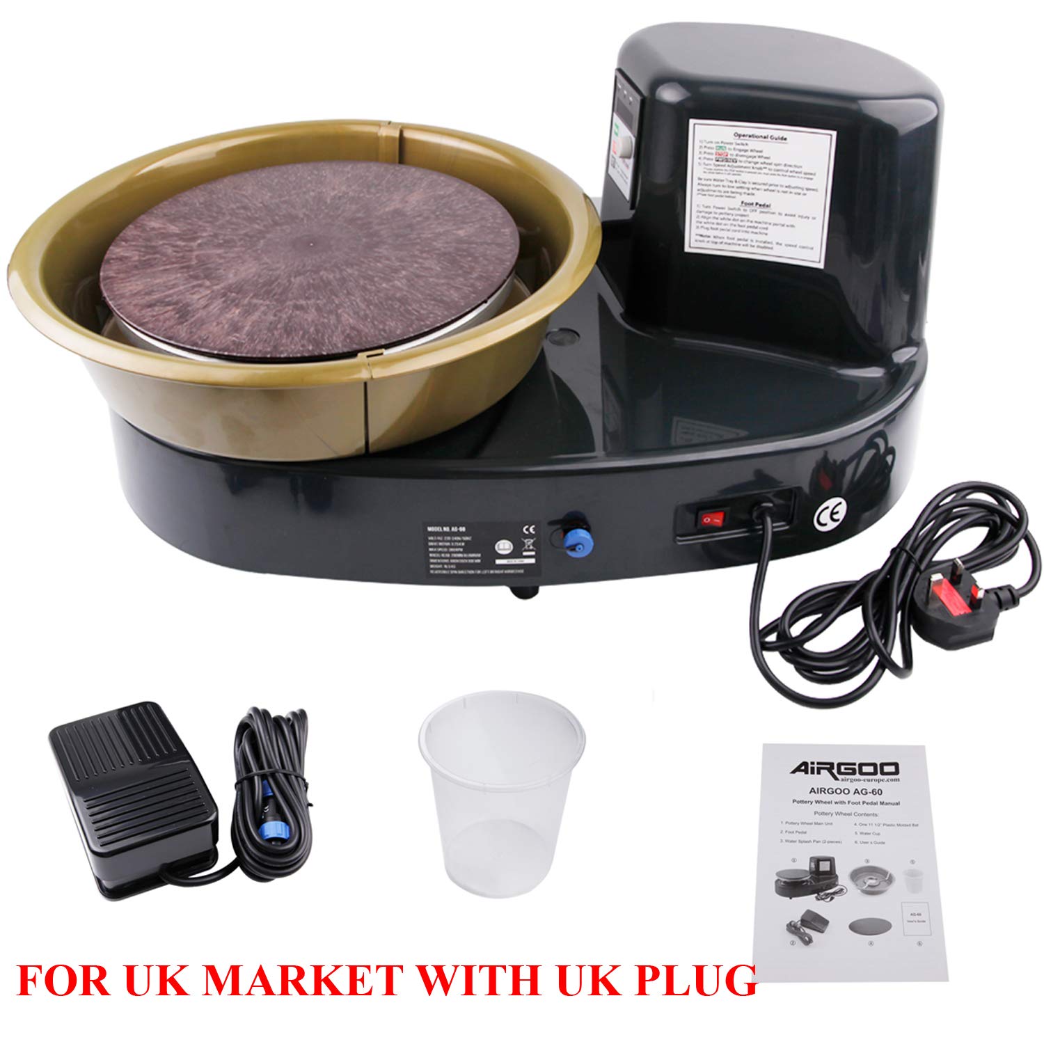 Airgoo Pottery Wheel Ceramics Clay Machine AG-60 250W Electric Machine with Independent Pedal DIY Ceramic Form Tool Ceramic Wheel Machine
