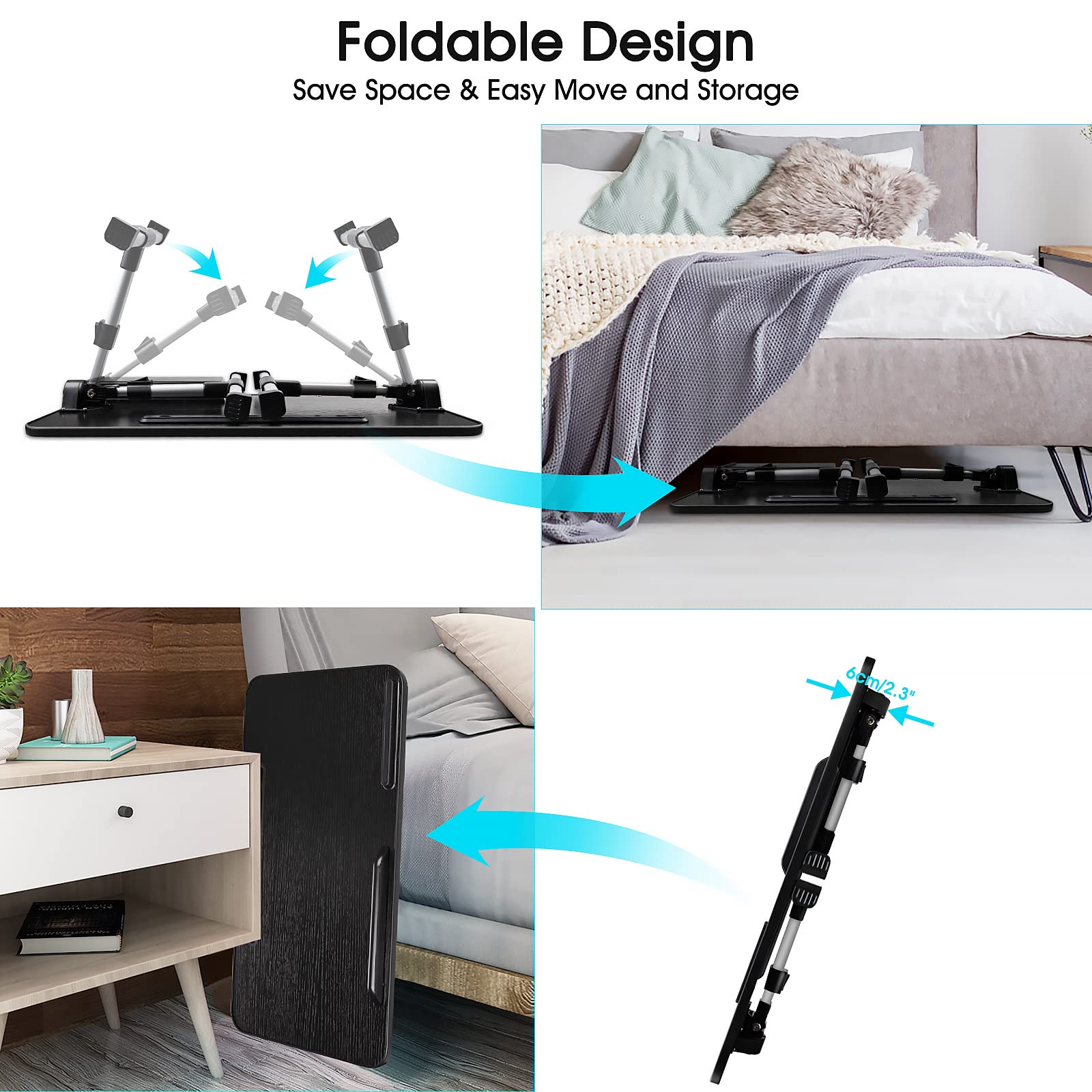 【Space Saving】The bed table does not need to be assembled, the table legs are foldable, open the table legs to be used, takes only 3 seconds. When not in use, you can store it by the bed or behind the door without taking up space. Table legs with anti-slip pads, non-slip at the same time can also avoid scratching the floor or tabletop."