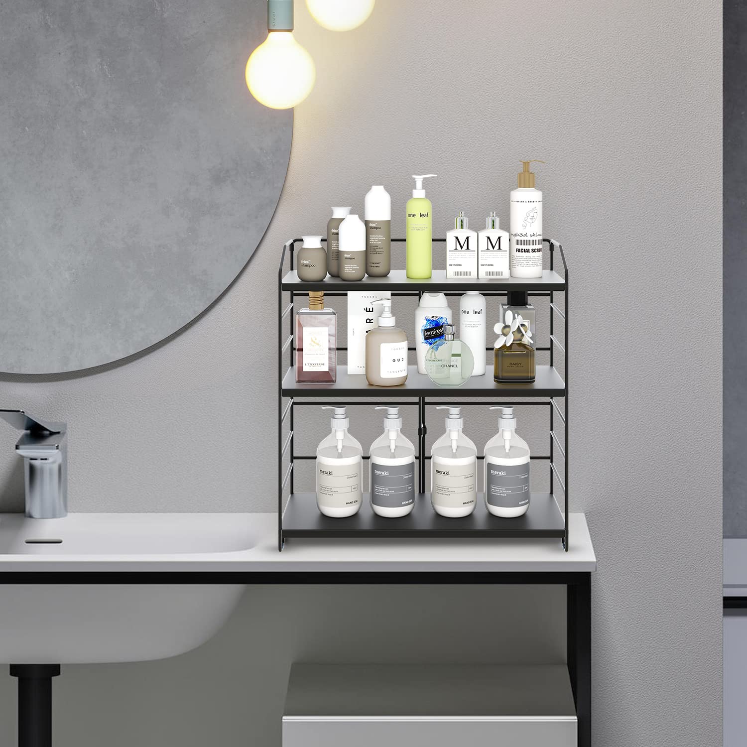 AIRUJIA metal spice rack, 3 levels adjustable kitchen shelf, desk organizer suitable for kitchen, bathroom, and bedroom, standing kitchen rack storage bathroom black.