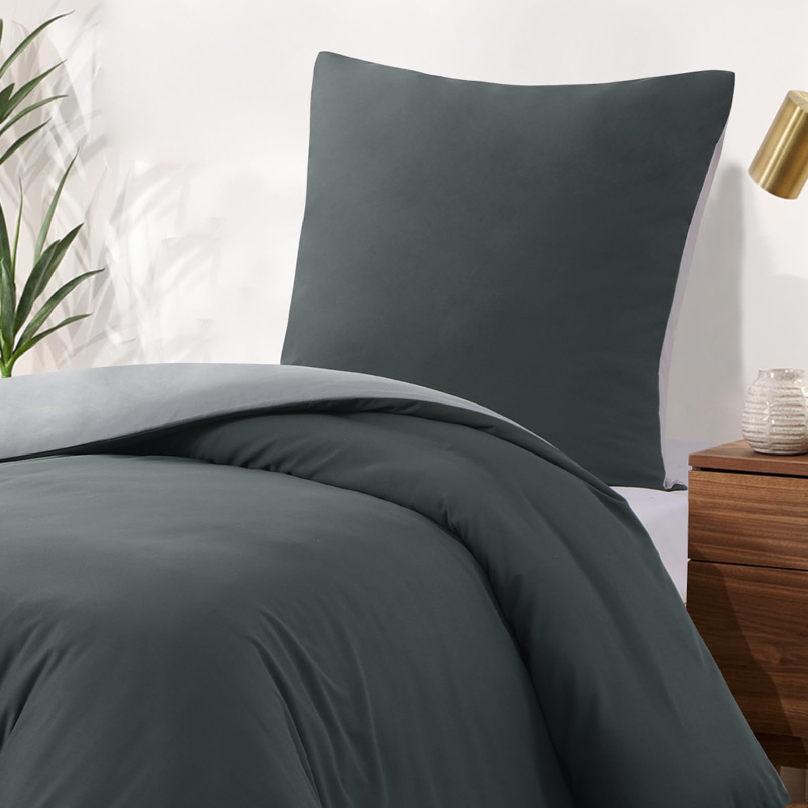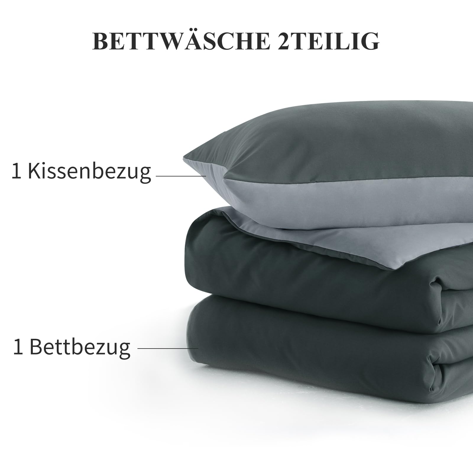Aisbo bedding 155x220 2-piece anthracite/gray - bedding sets 1 duvet cover 155x220 cm + 1 pillowcase 80x80 cm, ÖKO-TEX reversible bedding soft microfiber with zipper.