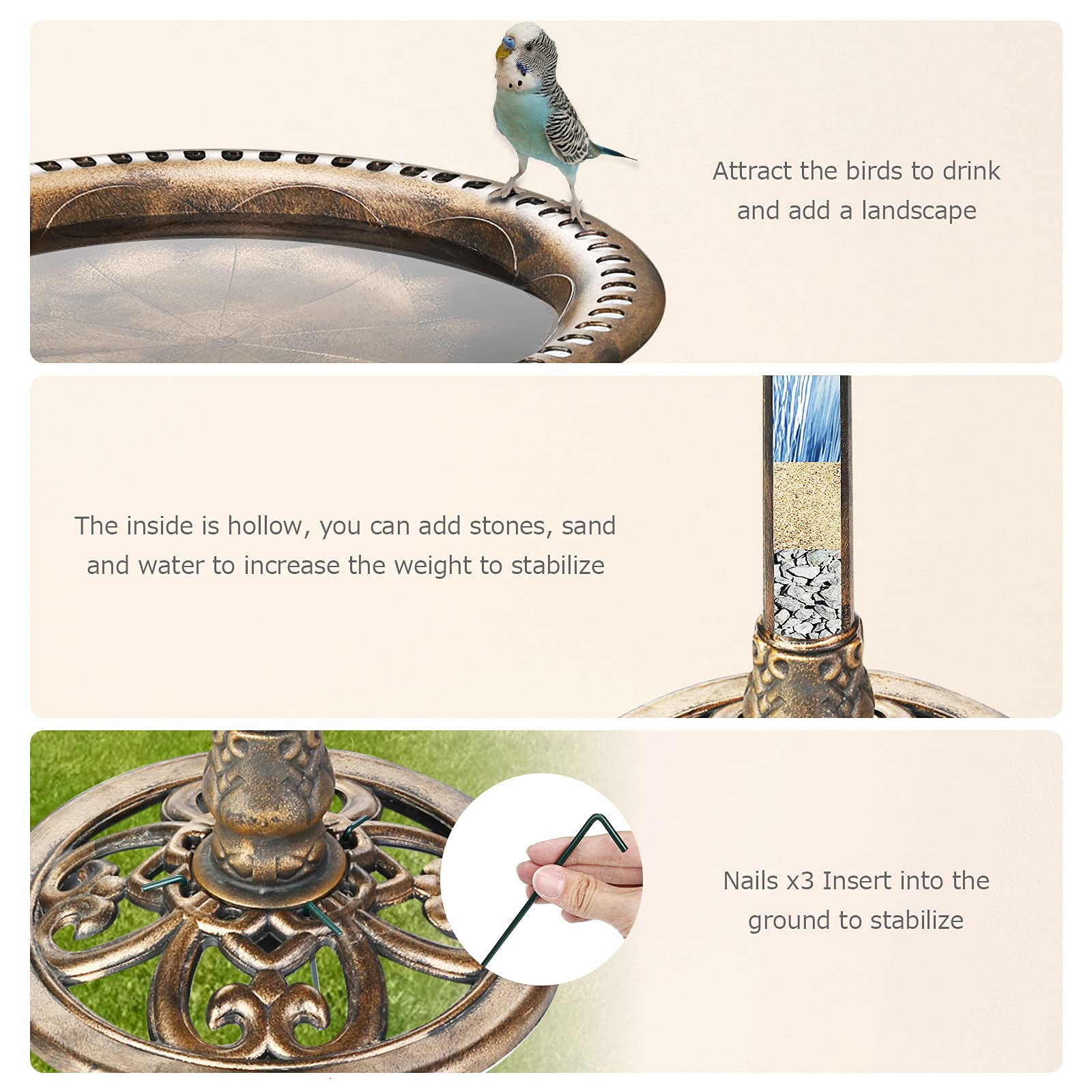 AISITIN bird bath with 2.5W solar fountain, feeding place, garden/balcony decoration, bird bath feeding station for balcony terrace garden decor bird bath bronze plastic.