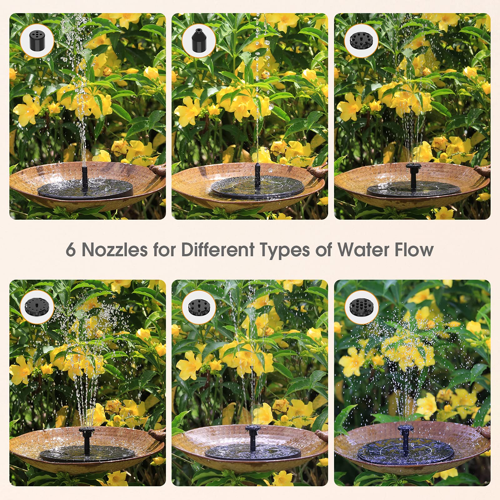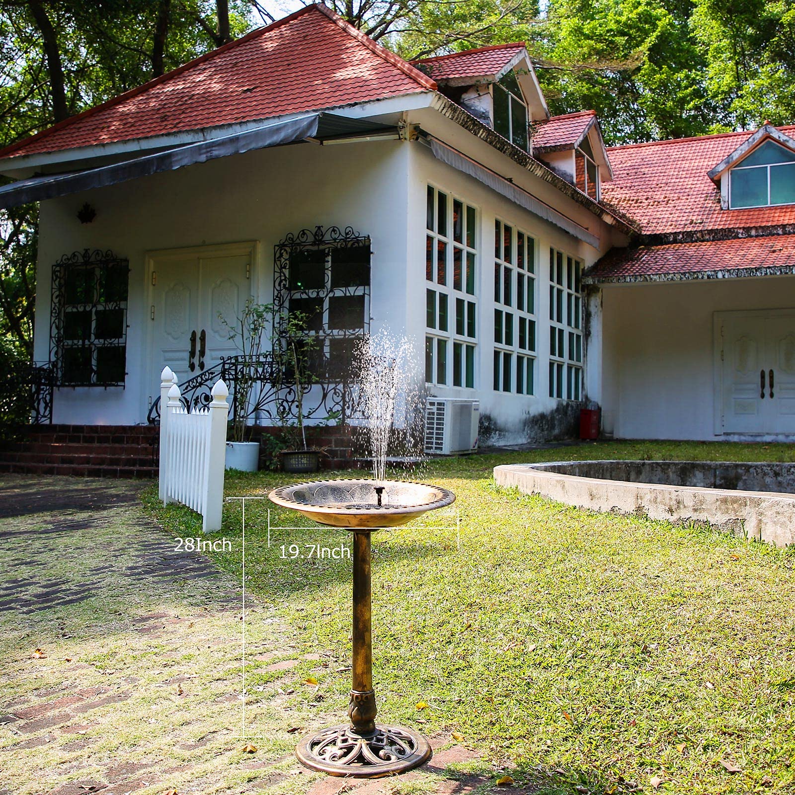 ["【Combo Set】 The package includes a garden bird bath and 2.5w solar-powered water fountain pump; A beautiful addition to your garden, patio, yard, deck, or other spaces","【Durable Material】 The bird bath is made of weather-resistant polyresin with a beautiful design and finish, sturdy and durable for many years; It will not dent, break, or crack and can withstand intense sunlight and cold temperatures","【Lightweight Design】 The bird bath is very lightweight, making it easy to move to the perfect location; For added stability, you can fill the pedestal with gravel or stones","【Solar Powered Fountain】 It is solar-powered and eco-friendly, drawing energy directly from the sun to propel water into the air; Allows multiple birds to drink or bathe at the same time","【Multiple Water Patterns】 Multiple fountain heads for various water patterns; Easy assembly and head replacement; Please pay special attention to adequate water supply in smaller water features on sunny days"]