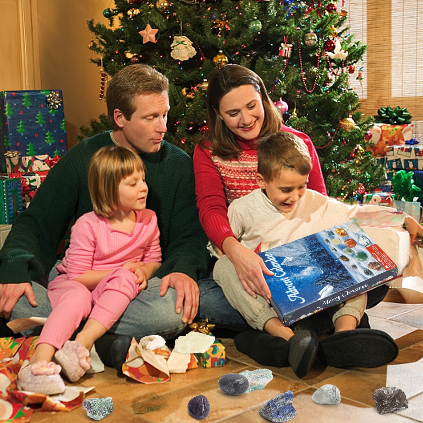 Aitsite Advent Calendar Minerals Gemstones, 24 day National Geographic Advent Calendar, Christmas Calendar Stones Crystals, Gemstone Calendar for family Christmas gifts