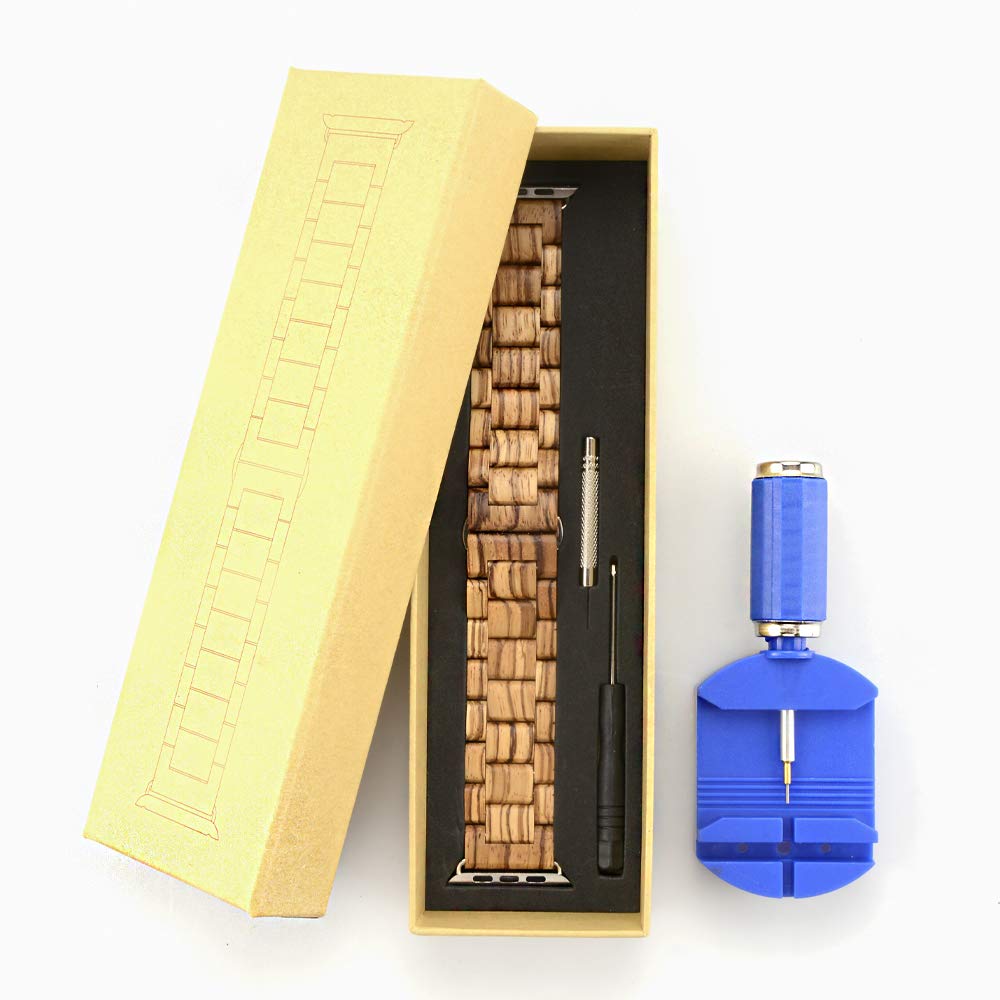 AIYIBEN wooden watch band 38mm/40mm/41mm with stainless steel butterfly clasp, compatible with iWatch Ultra 2 SE Series 1 2 3 4 5 6 7 8 9 (Zebra)
