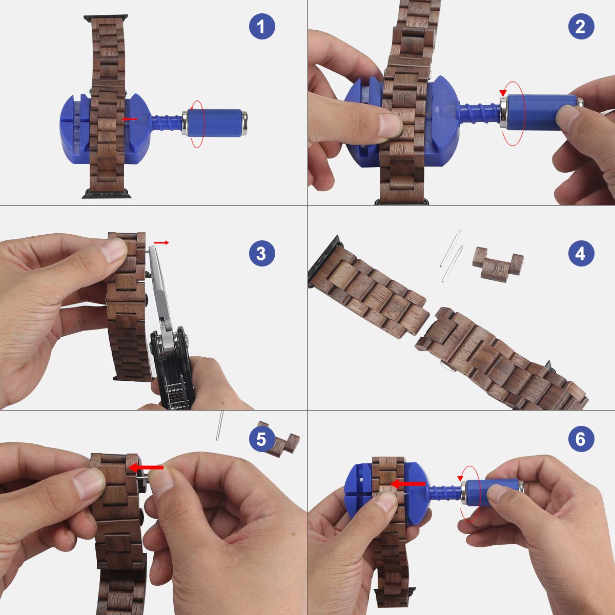 ["5. You don't have to worry about not knowing the wrist size of your loved one. Each AIYIBEN wooden watch band comes with a special adjustment tool for the watch band that is very easy to use."]