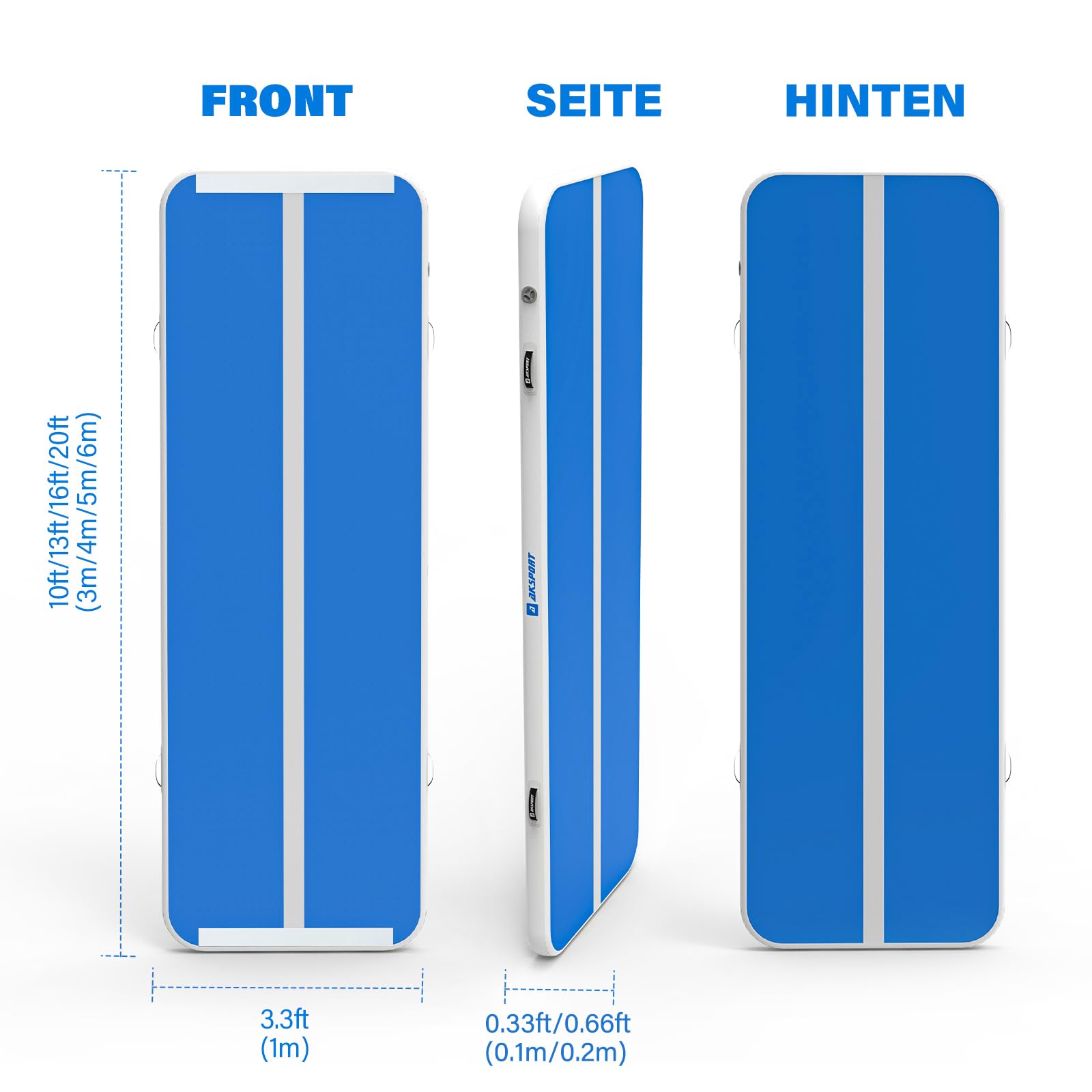 AKSPORT Air Track Tumbling Mat, 3/4/5/6m Inflatable Gymnastics Mat 10/20cm high with air pump for home/tumbling/gym/training/cheerleading double blue