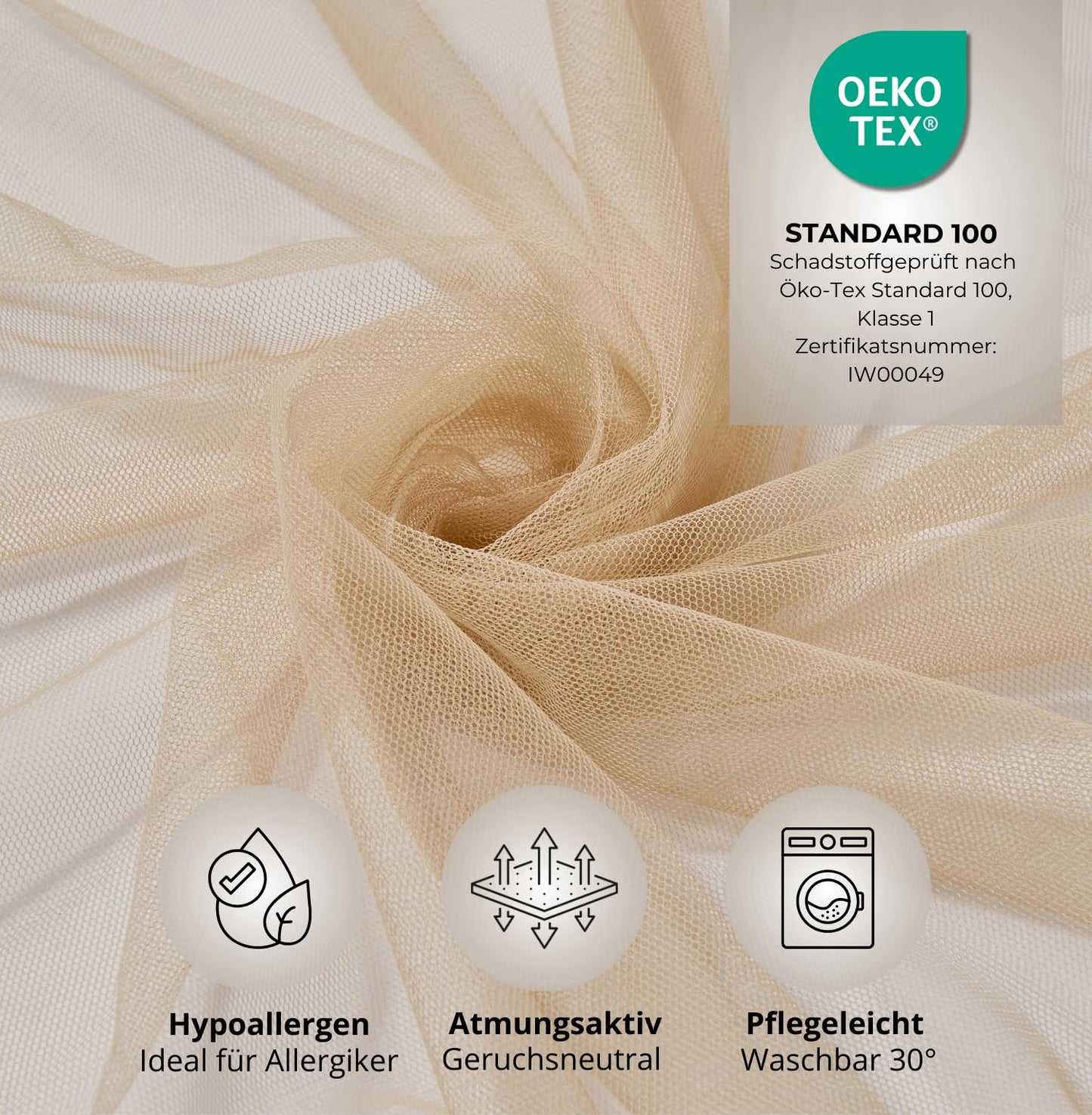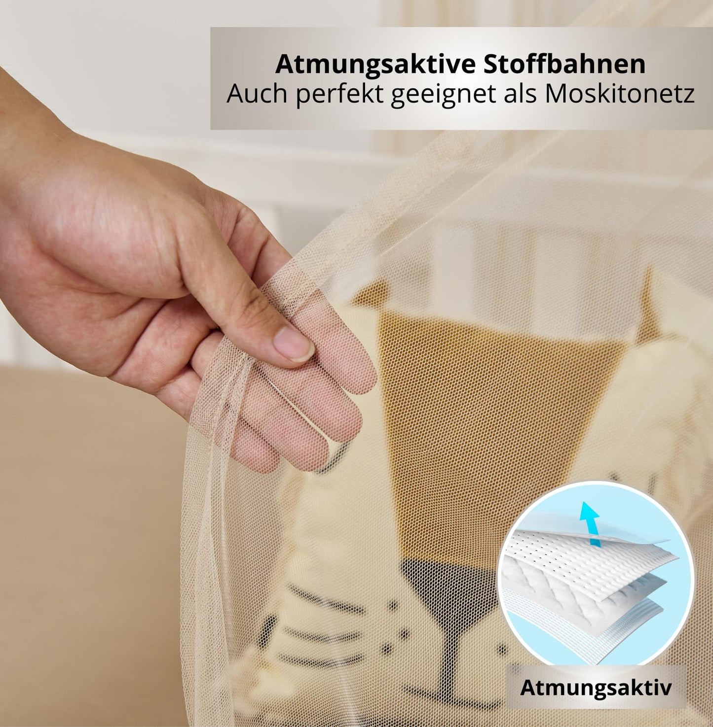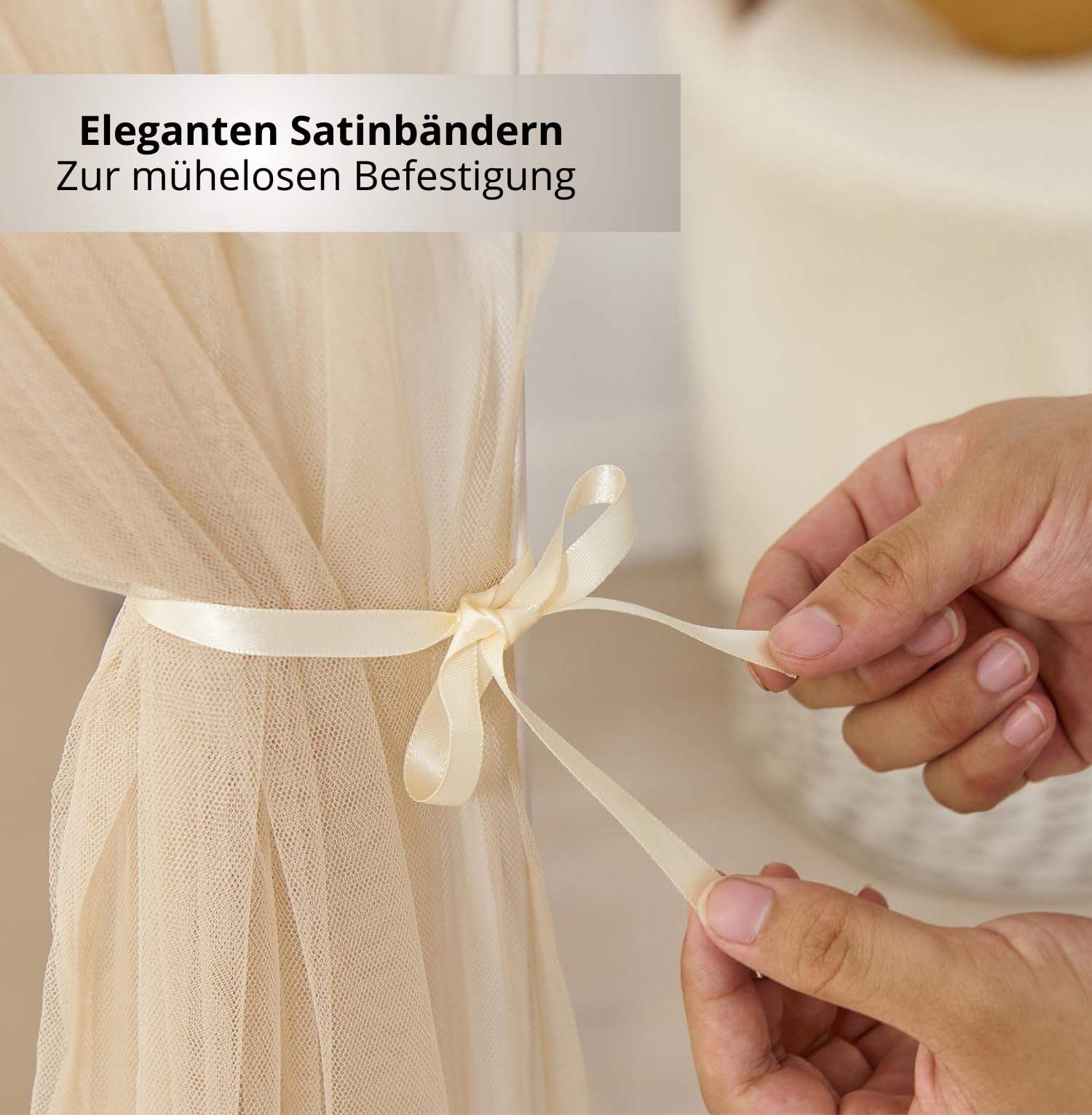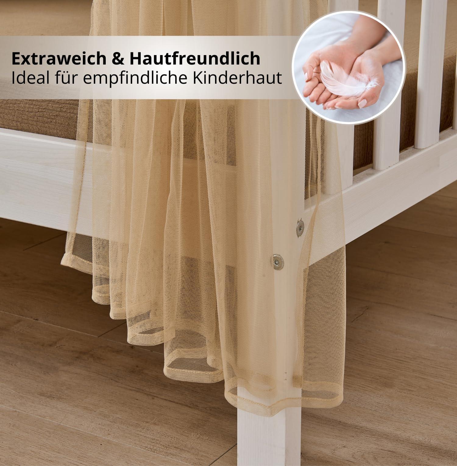ALAVYA HOME® 4-piece house bed decor set with 2 pieces of bed canopy, 1 piece of bunting garland 300cm long for children's bed room, 100% organic cotton bunting garland 150 x 350cm with string lights in beige.