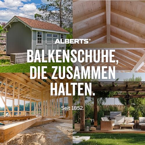 ["Material: Steel, galvanized","Dimensions: clear width 1.57 inches - height 4.33 inches - material thickness 0.08 inches - number of holes 4 / 17 - hole diameter 0.35 / 0.2 inches","Design: Type B","High-quality beam shoe in proven quality from Alberts - top-quality problem solver that always helps when perfection is needed."]