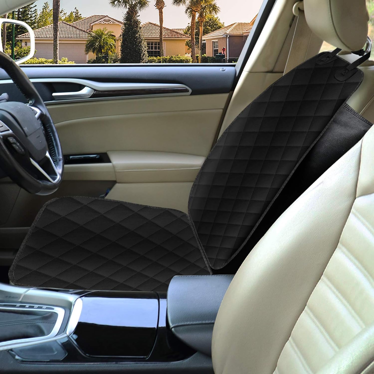 Alfheim non-slip front car seat cover for dogs, rubber backing scratch-resistant pet car protection with anchor, fits most trucks, vans, and SUVs, black