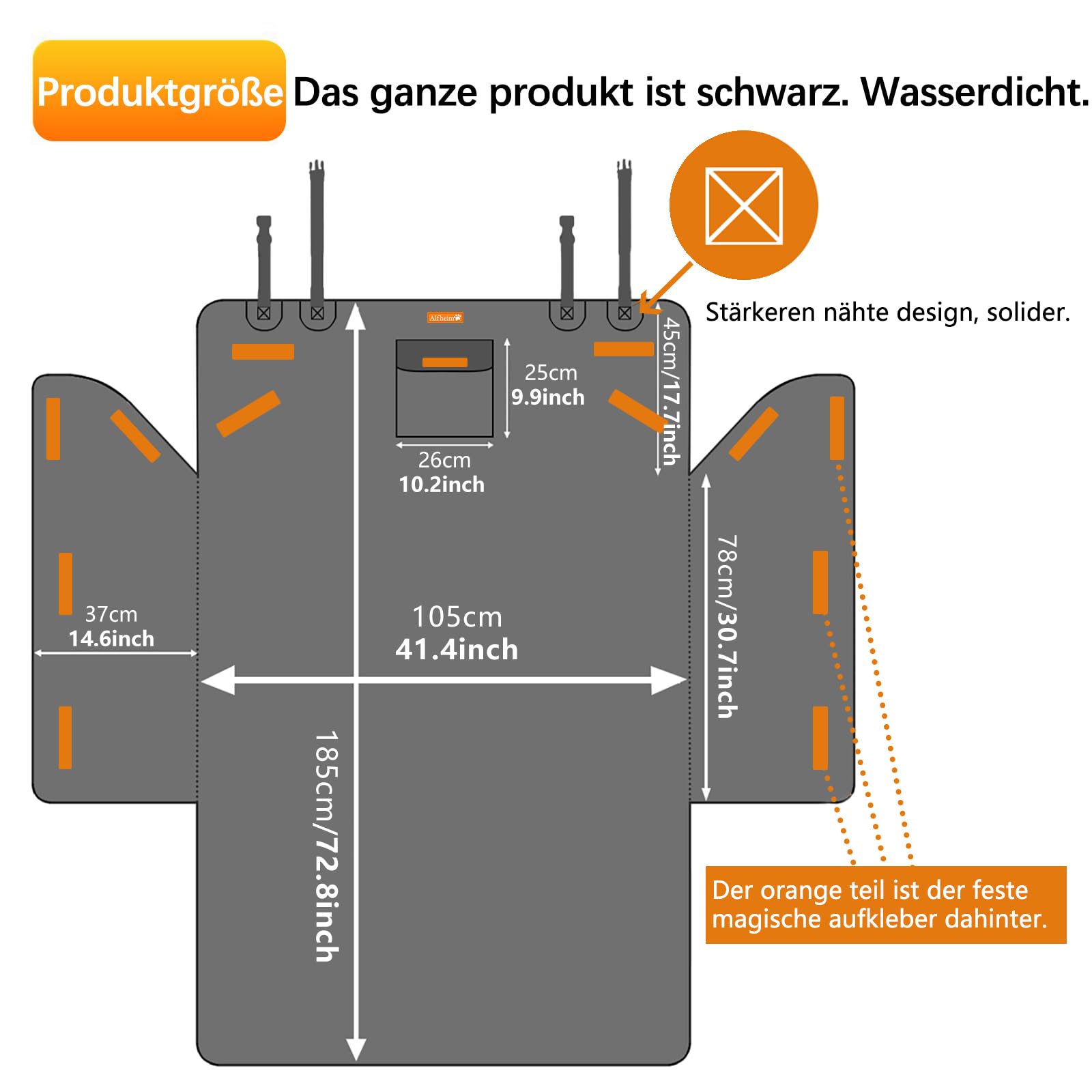 "✅【PERFECT DESIGN】Excellent size of 185x105x36cm / 72.83x41.34x14.17 inches. Fits most mid-size and small cars. Alfheim cargo liner is equipped with special closures and fasteners, 2 adjustable buckles tighten on the headrests of the car's rear seat. There are 4 magic sticker strips to stick to the car wall, effectively preventing slippage.",
