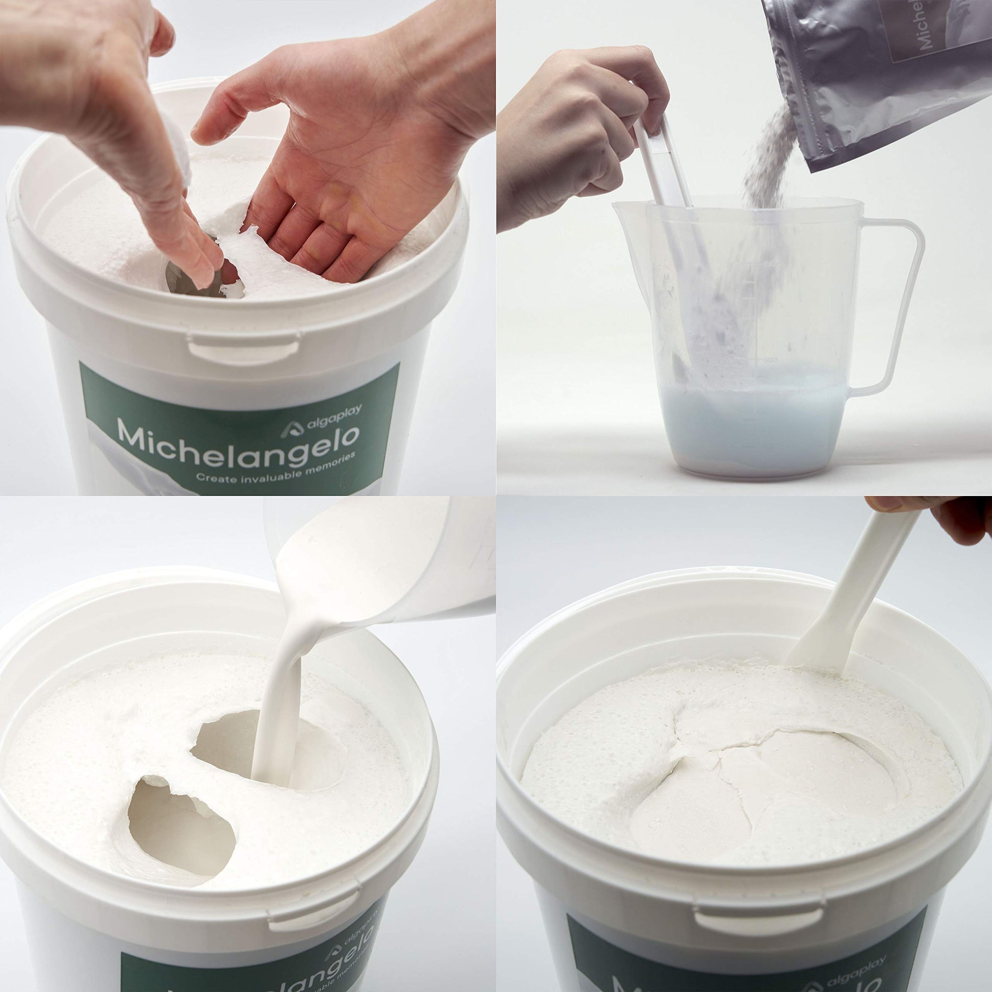 "The highly precise alginate for fingerprints included in the kit is perfect for capturing hand or body prints. When combined with Michelangelo Casting Plaster, you will get imprints that perfectly reproduce all anatomical details."