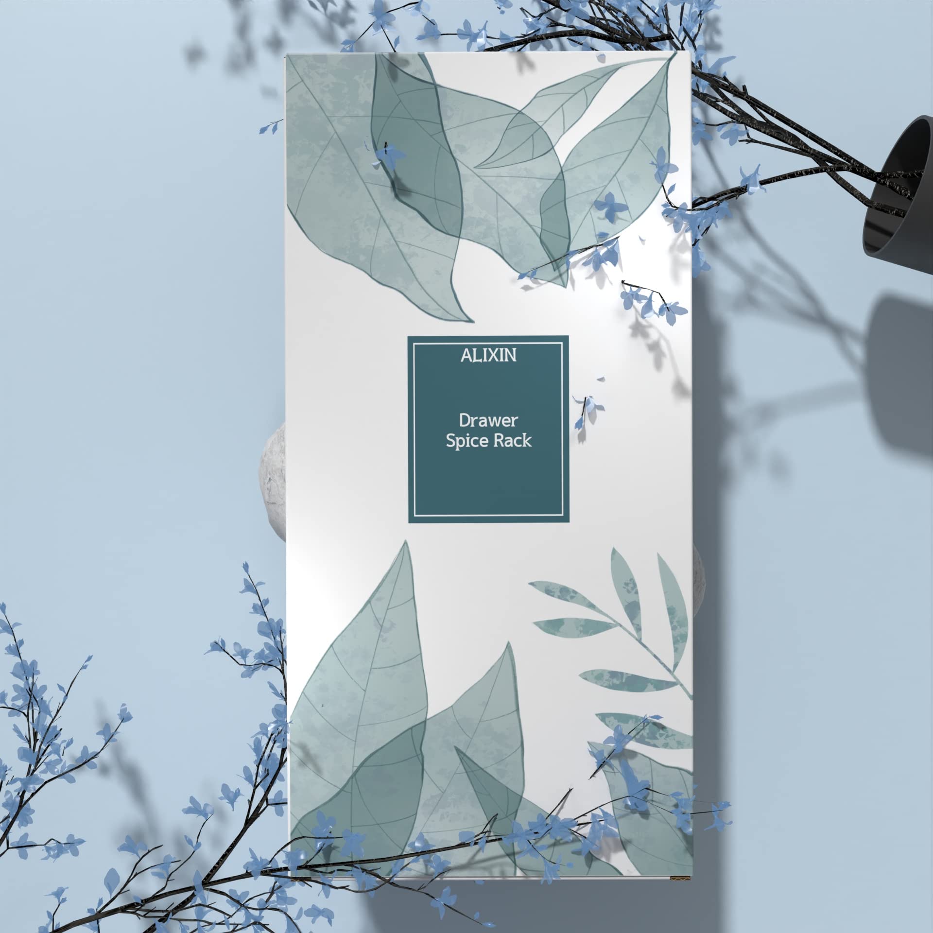 Alixin spice rack for drawer, extendable PVC spice rack for kitchen drawer, three-tier drawer.