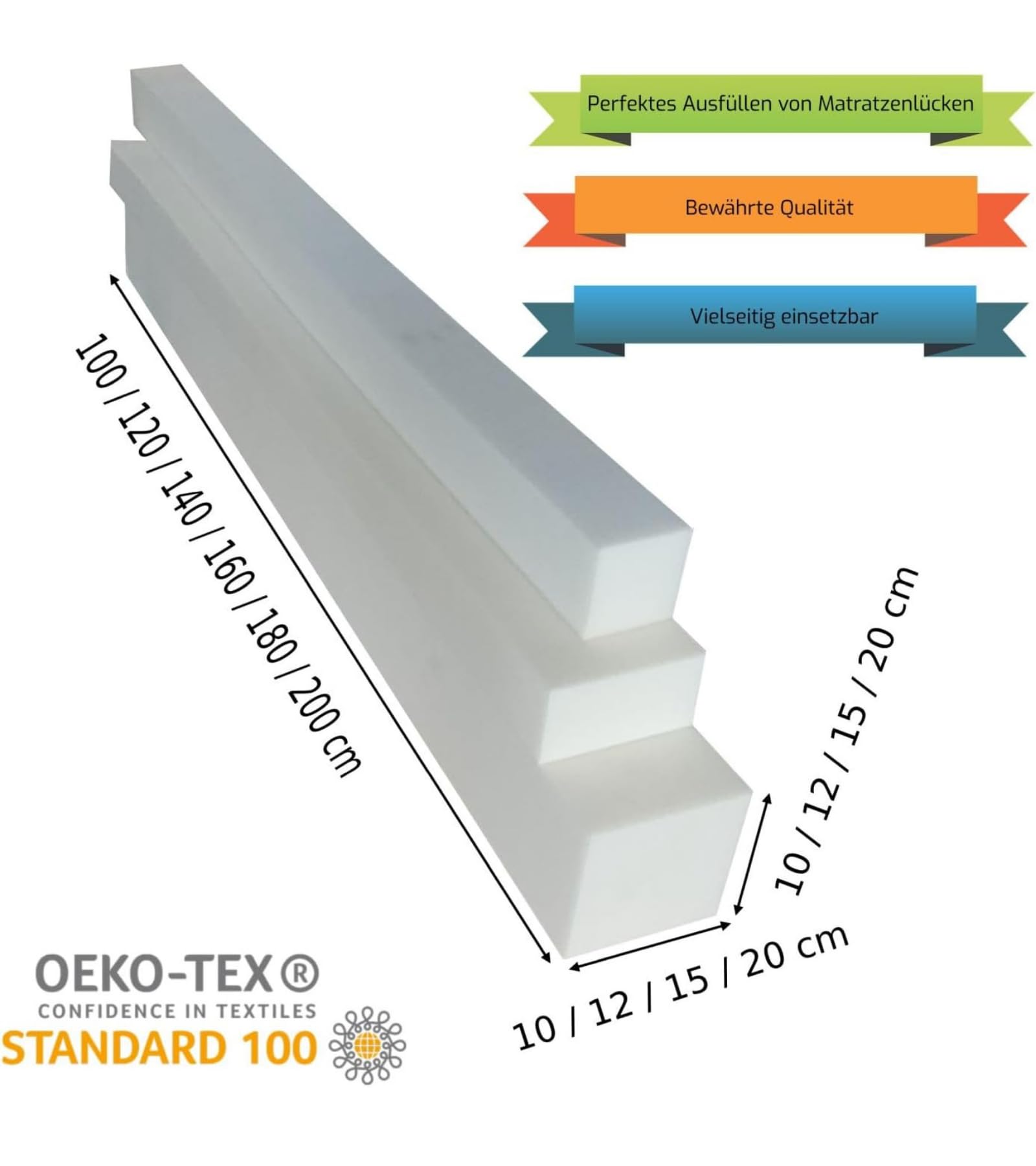 All4All mattress extension - additional mattress - foam cutout - mattress wedge - bed gap filler, mattress leveling - mattress connector - mattress extender - RG25/44-15x20x200cm