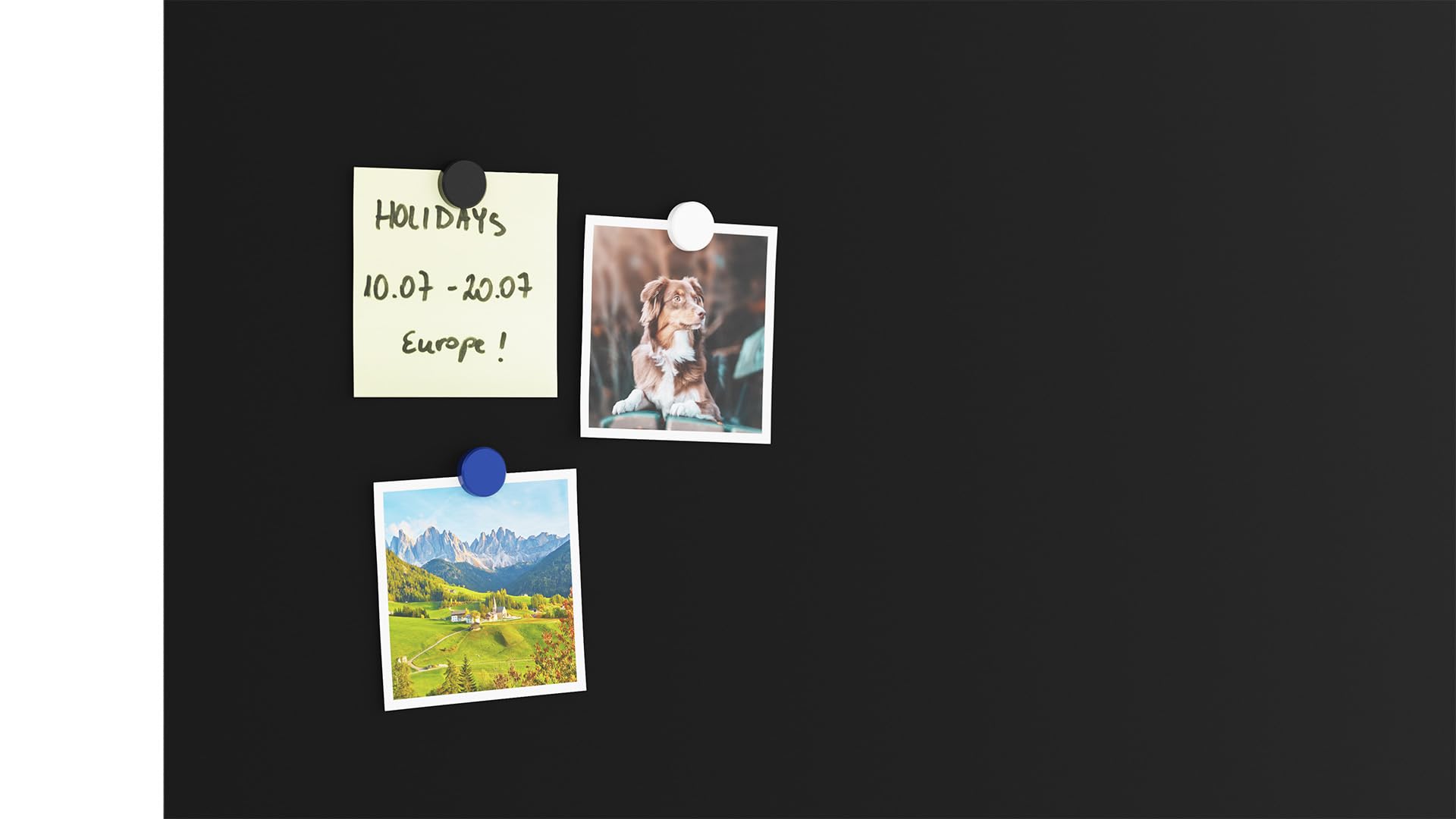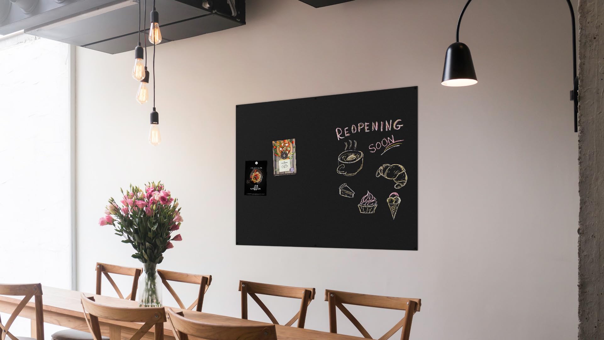 ["CHALKBOARD SURFACE - the basis of SLIMboard is a composite panel with high rigidity, coated with a chalk finish. This ensures an elegant appearance and deep black color. The surface is writable with chalk and chalk markers.","MAGNETIC - thanks to the components used, the board is fully magnetic. You can use any type of magnet on it: classic, tourist magnet, souvenir magnet, neodymium magnet.","NO FRAME - polished edges provide an elegant look and allow the SLIMboard product to blend seamlessly into the environment.","EASY ASSEMBLY - the board can be quickly and securely mounted with the included mounting kit."]