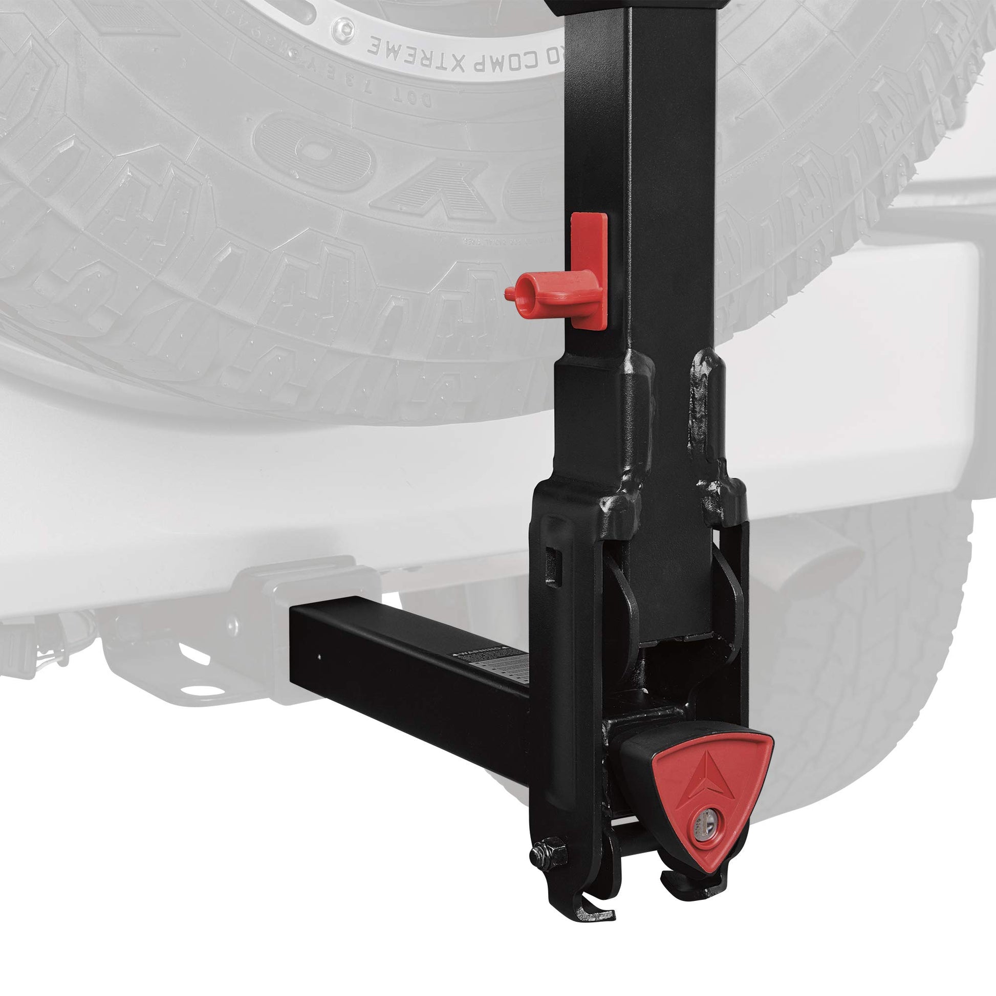 ["Easy-to-install lock insert for 2-inch receiver couplers; includes 2 keys","Quick snap carrying arms fold out of the way when not in use","Dual compound and quick-release straps secure and protect bikes individually","Internal tilt mechanism allows easy access to gate; carrier lays completely flat to allow access to vehicles with foldable rear tires","Padded spine protector protects bikes during transport; Allen's warranty does not apply to products purchased from third-party sellers"]