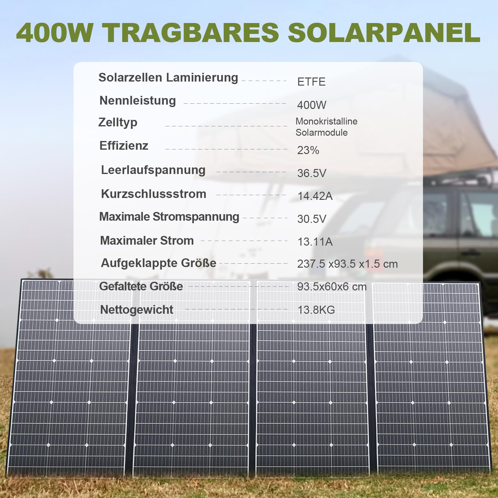 ALLPOWERS 400W Solar Panel, foldable solar module for R1500/R2500/R4000/S2000 PRO/S1500 portable power station, photovoltaic module solar system for outdoor garden balcony caravan camping