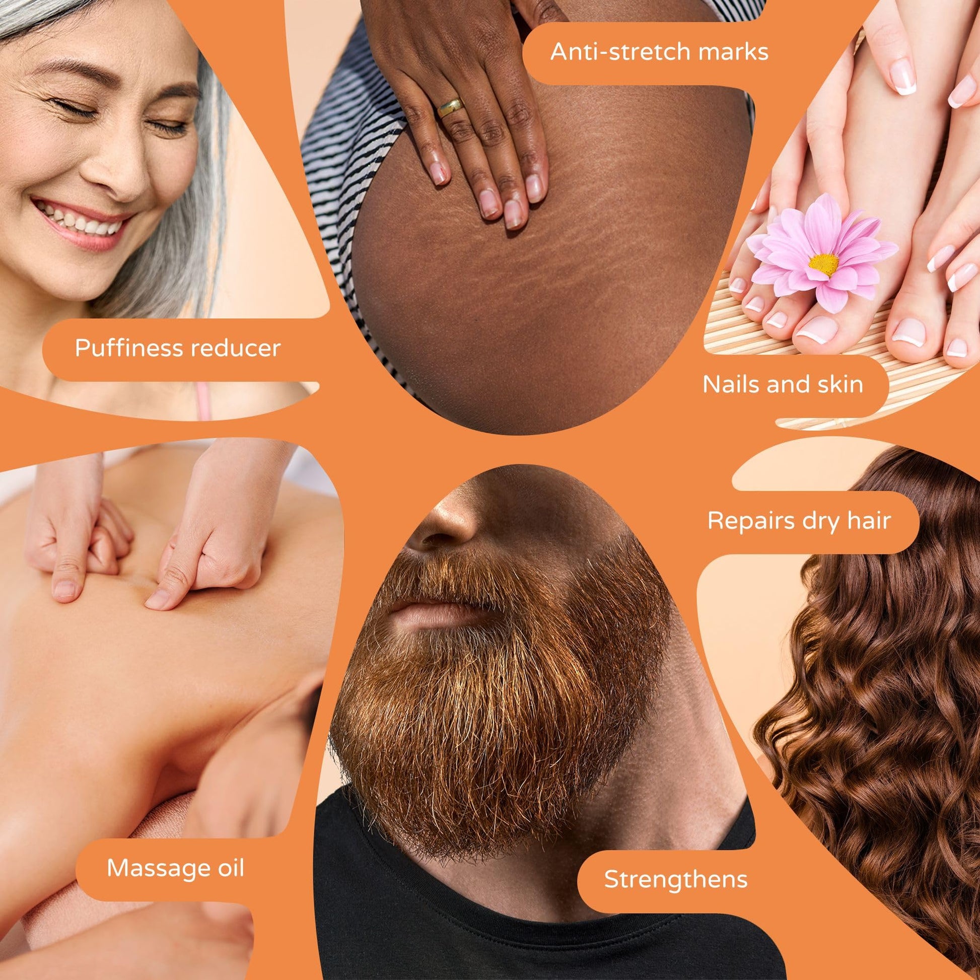 USES OF ALMOND OIL FOR HAIR: Hair oil, hair moisturizer. Intensive and repairing mask for dry and damaged hair. Beard and eyelash care and strengthening. Hair conditioner and hair smoothing.