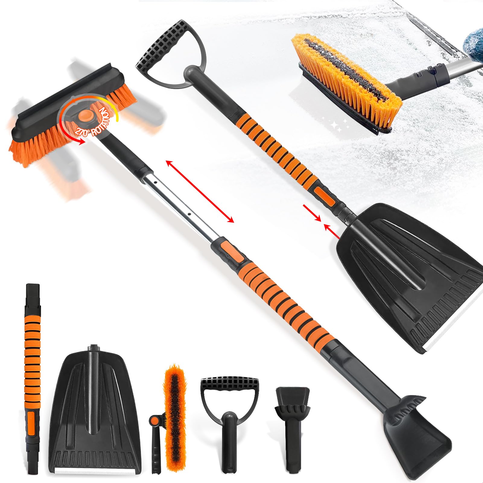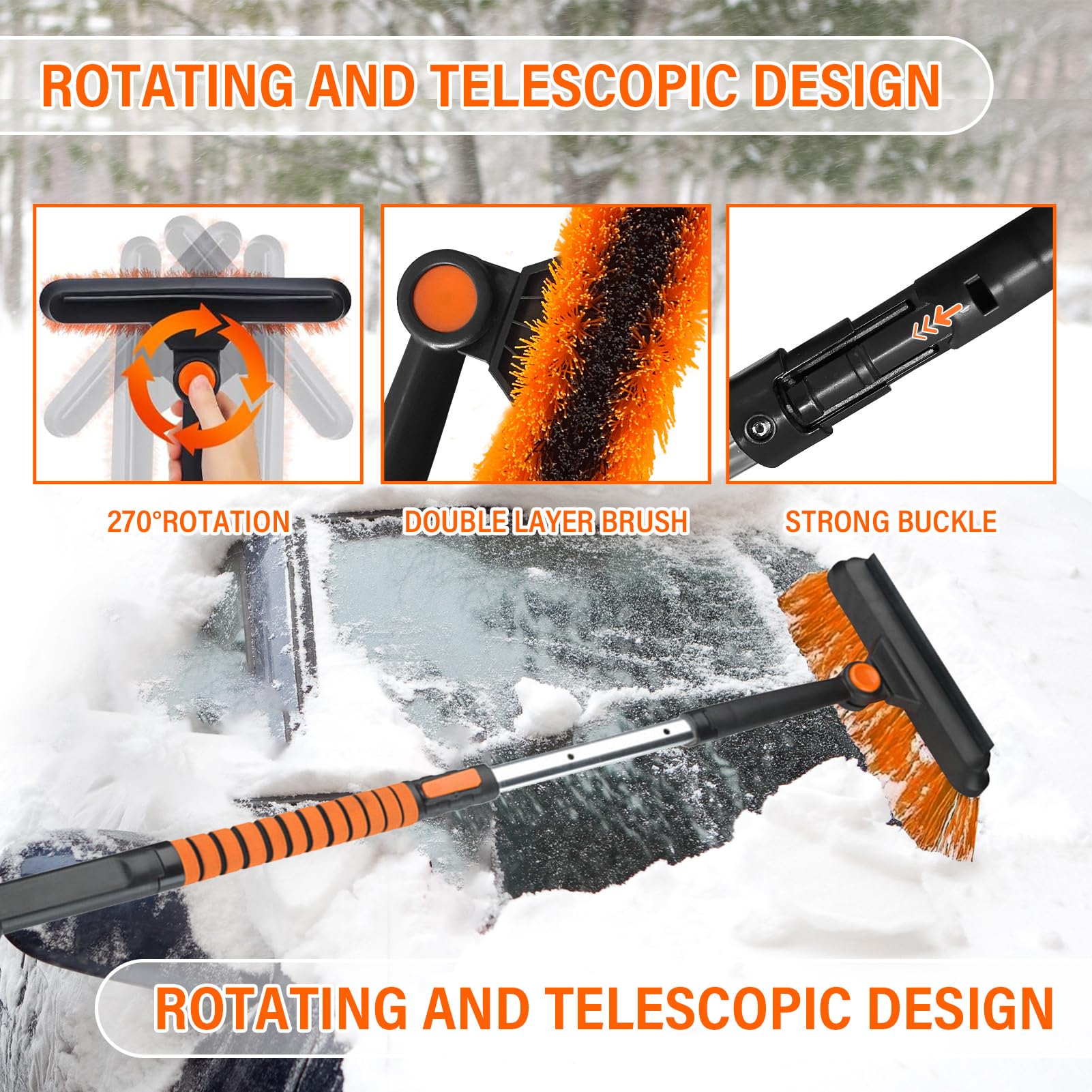 ["Effective snow removal】Our 5-in-1 snow scraper for cars and SUVs combines a large and thick brush, scratch-free squeegee, and sturdy snow shovel to efficiently remove ice, snow, and frost from your vehicle. Say goodbye to time-consuming and tedious snow removal.",