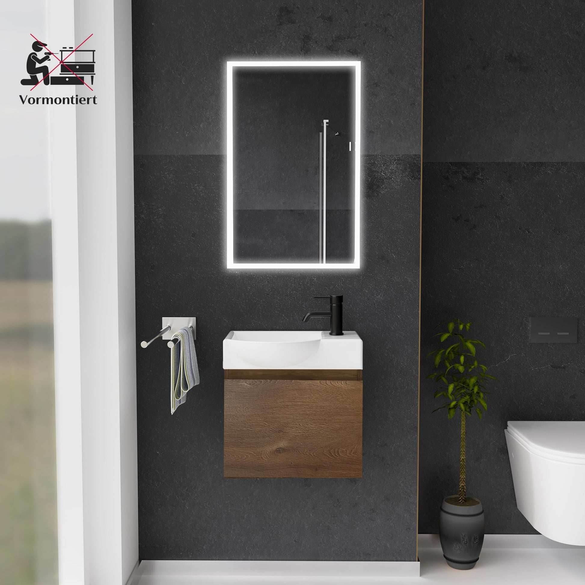 Alpenberger washbasin with cabinet | guest toilet sink small 45 cm wide | countertop sink with sink cabinet | bathroom wall cabinet | washbasin cabinet oak