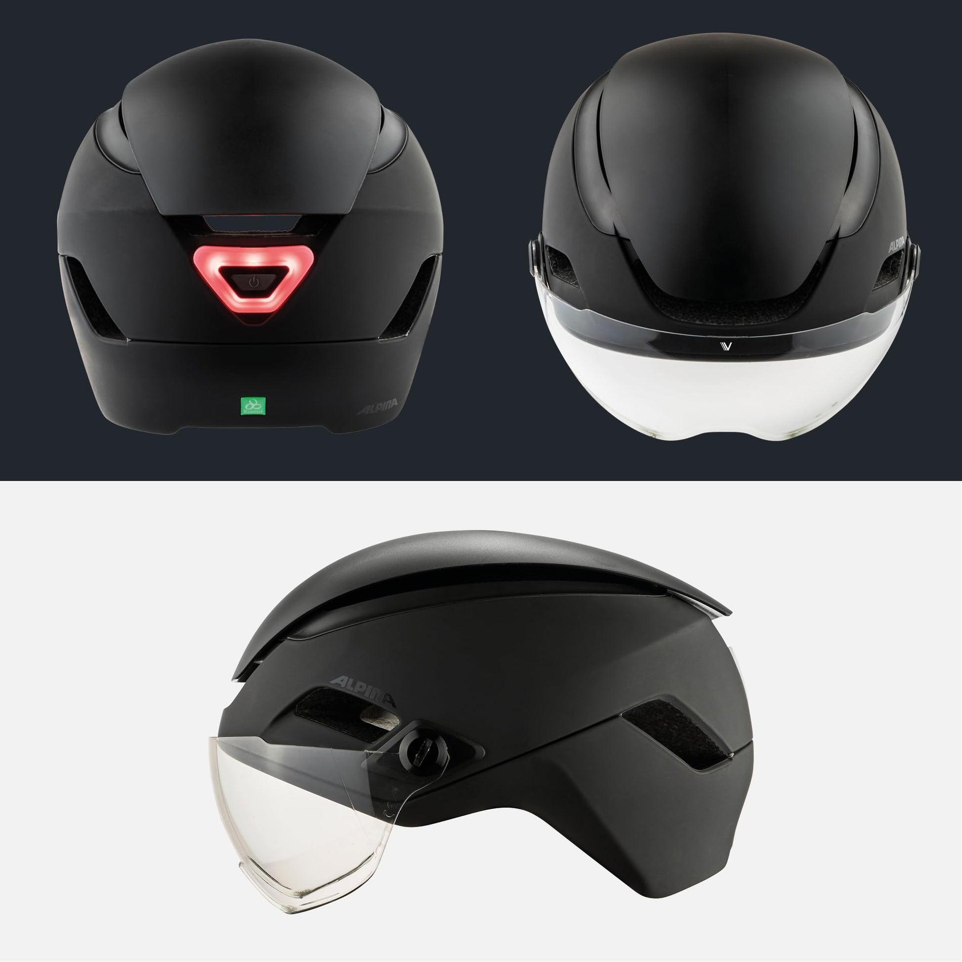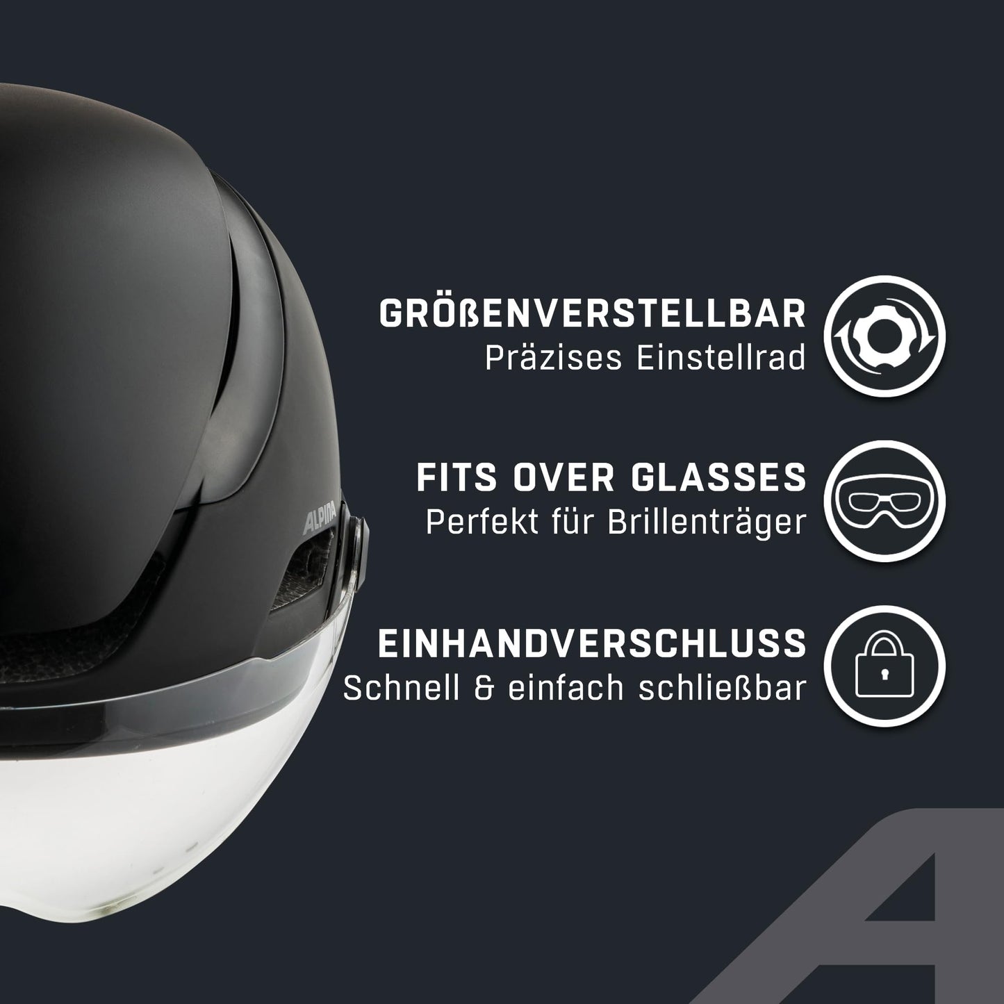 Alpina Altona V - Extremely Lightweight, Illuminated & Ventilated Bike Helmet with Self-Tinting Visor for Adults, Black-Stealth matt, 52-57 cm