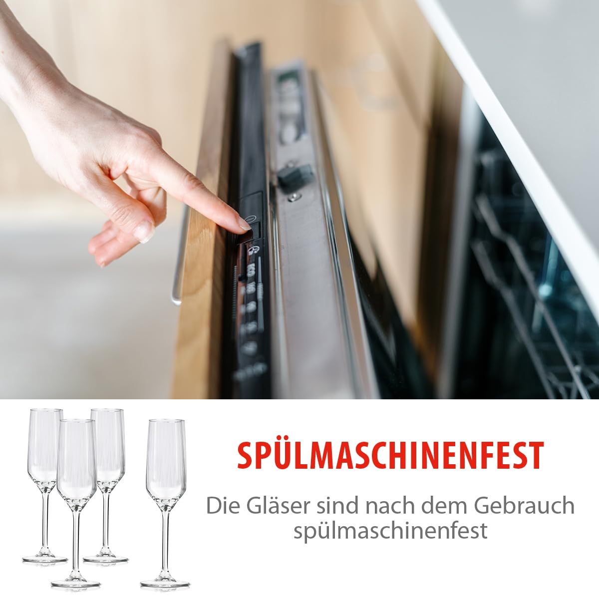 Alpina champagne glasses 22cl - Set of 4 champagne glasses - Also suitable for Cava and Prosecco - Drinking glasses set - Dishwasher safe glass.